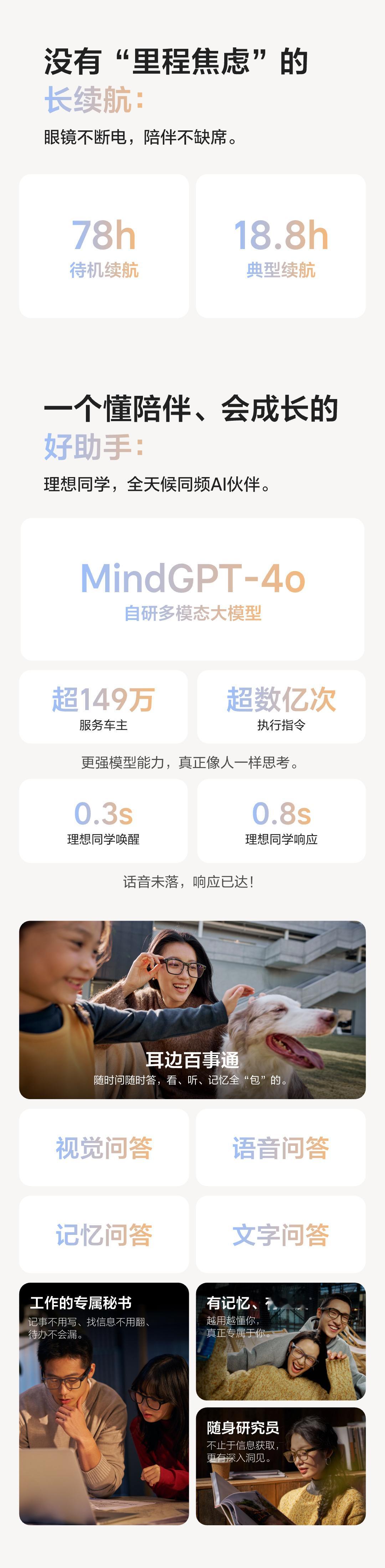 理想AI眼镜 Livis已经发布,跟大伙简单聊聊~全系标配蔡司镜片、经典框型、重量36g。影像方面,配备索尼IMX681 1200万像素摄像头、带有EIS防抖、能够拍摄Live Photo、41分钟录制续航。还有双磁路三明治扬声器、蓝牙5.4、内置网易云音乐、最长待机续航78h、搭载MindGPT-4o大模型、语音控车、Livis OS系统。售价1999元起,大伙喜欢吗?理想AI眼镜Livis理想汽车