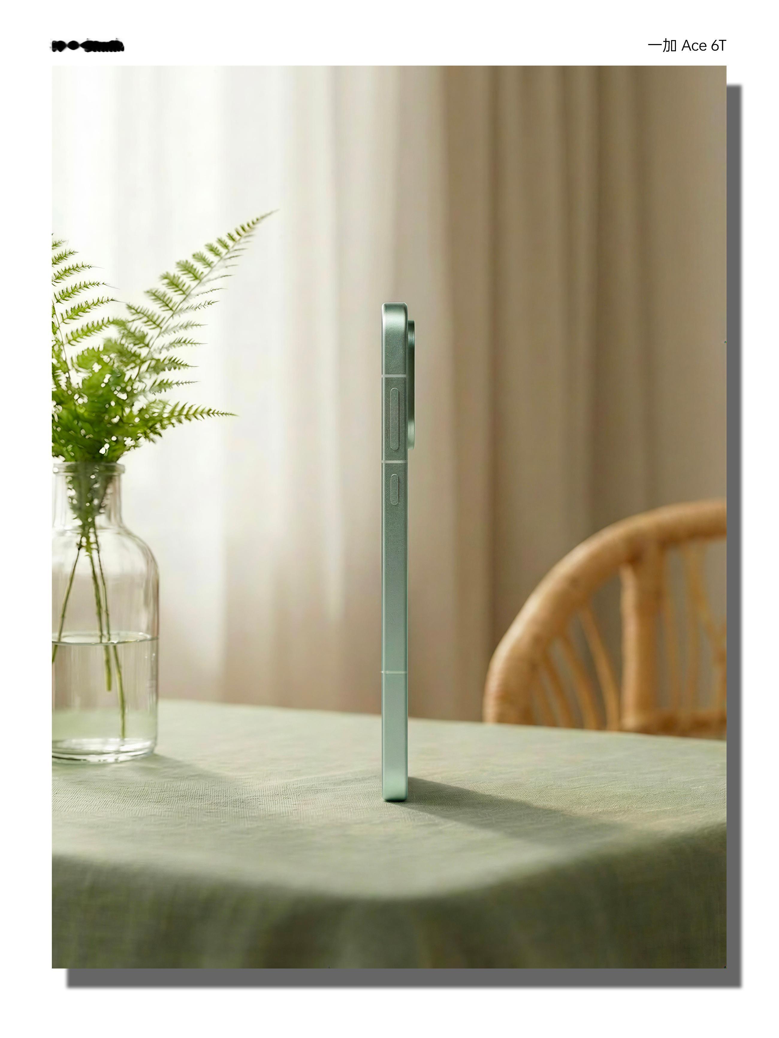HYK图赏|一加Ace6T掠影绿版本,整体是一个简洁的设计风格,“金属魔方”镜头Deco搭配纯色背板,给人一种干净利落的感觉。掠影绿的背板是丝绸玻璃,摸起来不沾指纹,再搭配上铝合金中框和圆润的黄金R角,手感很好。165Hz高刷屏和超大电池,售价2399元起,推荐游戏玩家看看。一加Ace6T新品发布你用过165Hz手机打游戏吗