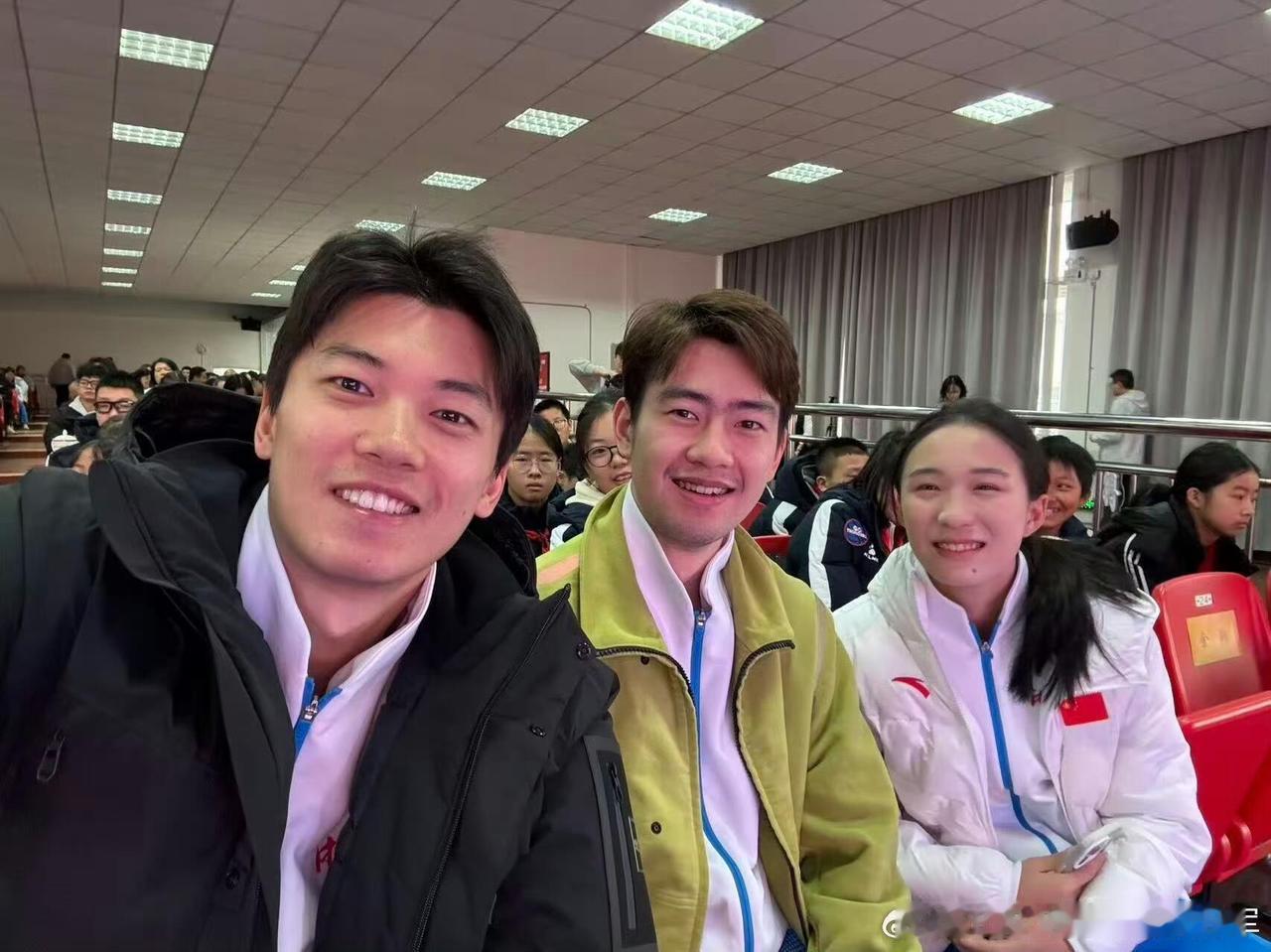 汪顺太权威了,老当益壮的年纪,还是大学生的模样,青春活力! 他们俩真的是创造了游坦的传奇人生,三个人同框,顺昶两个人合影,一张帅气脸的后面还是一张帅气的脸! 参加活动,比赛,他们的故事还在继续,汪顺还可以收获更多,老当益壮的顺 ;当打之年的昶;后起之秀的妹妹!