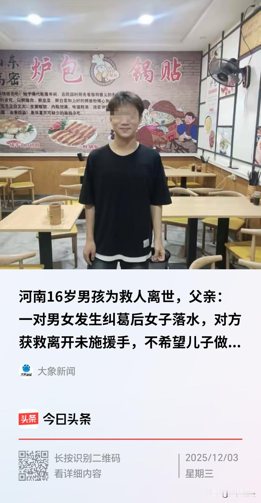 河南内乡,一16岁男孩和同学坐下聊天,旁边一对中年男女争执,女子落了水,河面传来