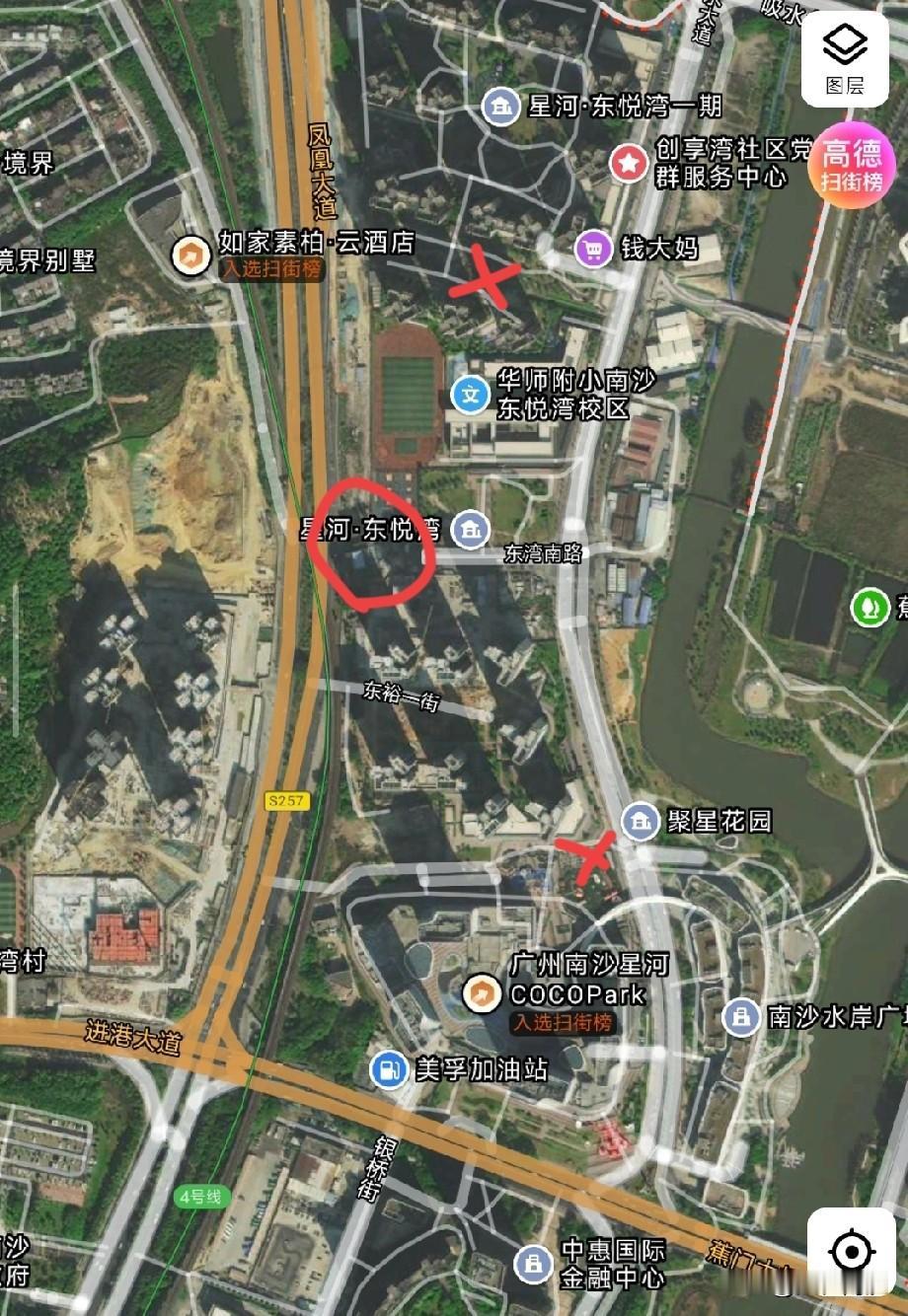 星河东悦湾中间,这几栋老房子竟然还没拆,导致这条东湾南路没能直接打通到凤凰大道。如果打通的话,这块的交通会顺畅很多。 其实不知道蕉门的路到底是怎么规划的,cocopark 北边只有半条路,照理说应该打通才是合理的,华师附小和华师妇幼两边应该也是有打通的路才对的。 而按照控规图来看,蕉门岛应该是有横跨两条路的,但是现在岛上已经搞成了公园,而东边的刚好又对着太极公园。西边那座新建好的桥,貌似也并没有直通对准东悦湾。 真的有点谜了。
