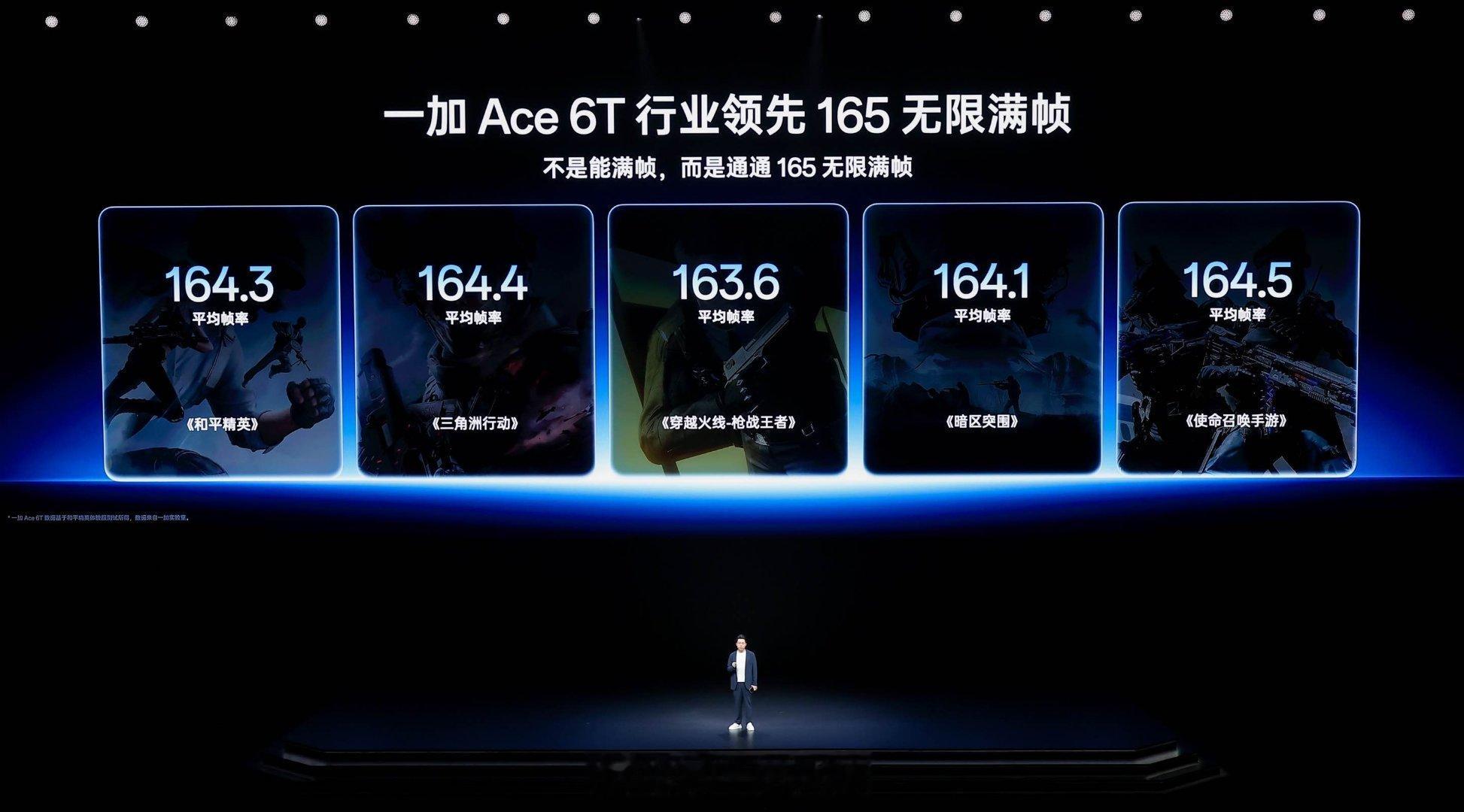一加Ace6T 首发搭载基于「风驰游戏内核」需求定制的第五代骁龙 8 ,这颗当代旗舰芯在深度写⼊全新⼀代「风驰游戏内核」之后,通过协同调动 CPU、GPU、NPU 全算力资源,实现三大核心突破:支持 165 无限满帧,即使在游戏+应用双开的超重载场景下,仍能持久稳定运行;具备行业领先的 1% Low 帧表现,确保团战不卡顿;搭载独家 GPU 渲染超帧技术,让更多手游即刻适配 165 帧。相比主流机型的120帧,165超高帧能帮助玩家更快捕捉对战信息,赢得竞技先机。全新「风驰游戏内核」,满级战力,持久流畅!一加Ace6T新品发布你用过165Hz手机打游戏吗