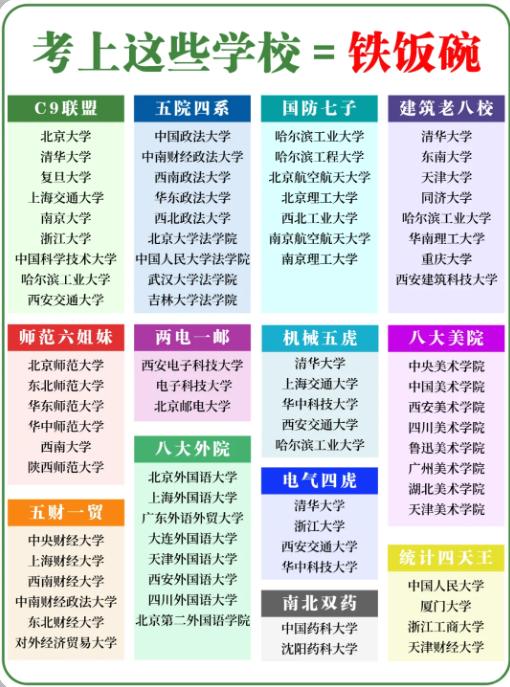 学术圈 “黑话” 大揭秘✨你知道几个 宝子们👋,学术圈也有自己的 “神秘黑话”,其实就是国内名校的各种称号~像 C9 联盟,那可是高校界的 “超强天团”,成员都是实力超强的顶尖院校。还有国防七子,在国防科技领域发光发热,超厉害👍 这些称号一定程度上反映了学校学科实力。但这几年高校发展太快啦,好多学校学科建设突飞猛进,就像开了挂🚀。 所以想知道最新最准确的学科实力,还得看第五轮学科评估结果~五院四系、师范六姐妹…… 这些 “黑话” 背后的故事,你都了解吗🧐快在评论区聊聊呀~