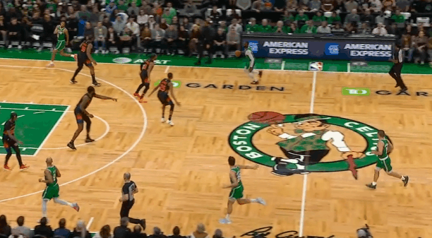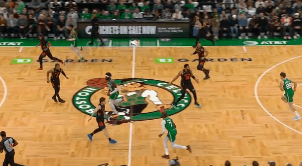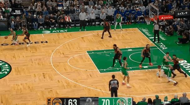 逐帧拆解:杰伦-布朗战尼克斯爆砍42分,得分创赛季新高图1要到布伦森错位后启动右路突破,沉肩、支肘获得投篮空间后立即赶在小麦刷卡到来之前衔接急停中投,稳稳命中。图2持球推过半场后立即抓早期进攻发动超高位置的“西班牙挡拆”(Stack),借助奎塔的掩护延阻追防的哈特后右路突破直杀篮下,唐斯也没有及时回退篮下守护禁区,布朗直接单臂战斧劈扣。图3转换进攻要到科莱克的优势对位后坚决惩罚,右路突破杀入禁区,凭借着对抗优势主动沉肩对抗后衔接欧洲步“碾”到篮下后右手上篮打进。图4依旧是早期进攻阶段超过位置的“西班牙挡拆”(Stack),这个回合布朗变向借助奎塔左侧的掩护挂住哈特,左手合球直接出手持球三分,惩罚唐斯的沉退。图5转换进攻要到布伦森错位坚决惩罚:威少的招牌“剪刀步”迅速衔接胯下走左路突破直杀篮下,突破途中遭遇大乔刷卡立即合球的同时对抗撞开布伦森,起步双手灌框隔扣前来协防护框的克拉克森。慢动作细节呈现:图6图7空手借助米诺特的“Pin Down”(下掩护)上提接球后佯装交叉步启动左路突破,将哈特的防守重心向自身左侧调动,随后迅速衔接转身右路突破,从哈特、唐斯二人之间的缝隙钻过的同时完成合球,起步抛投打进。图8面对米罗错位小打大,右路突破后迅速衔接“刺探急停”+“胯下拉回”后的撤步持球三分,持球三分也是佯攻,再迅速衔接左路突破变向,充分调度米罗防守重心、获得投篮空间后急停中投命中。布朗42分率队胜尼克斯凯尔特人战胜尼克斯