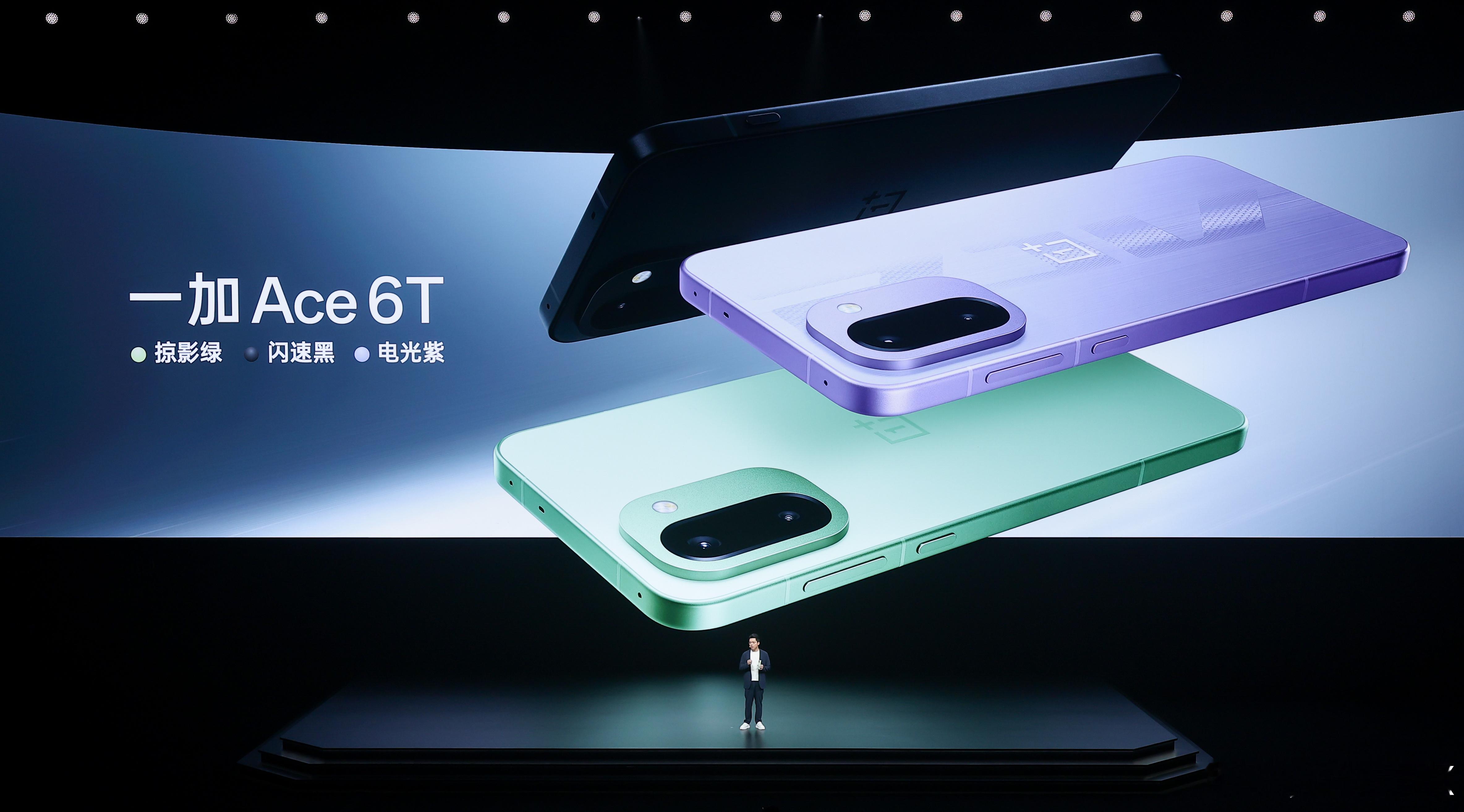 一加Ace6T 的配色好清新, 「掠影绿」、「电光紫」、「闪速黑」三款配色,延续简洁的设计风格,一加Ace 6T整机背板干净清爽,金属魔方Deco精致好看,搭配圆润的“黄金R角”与高强度微弧金属中框,尽显秩序美学的同时,实现舒适的握持体验与轻盈坚固的质感。正面采用超窄边设计,视野超沉浸,⼤屏更尽兴;更有全新升级快捷键,新增九大功能,自由定义,方便好用。一加Ace6T新品发布
