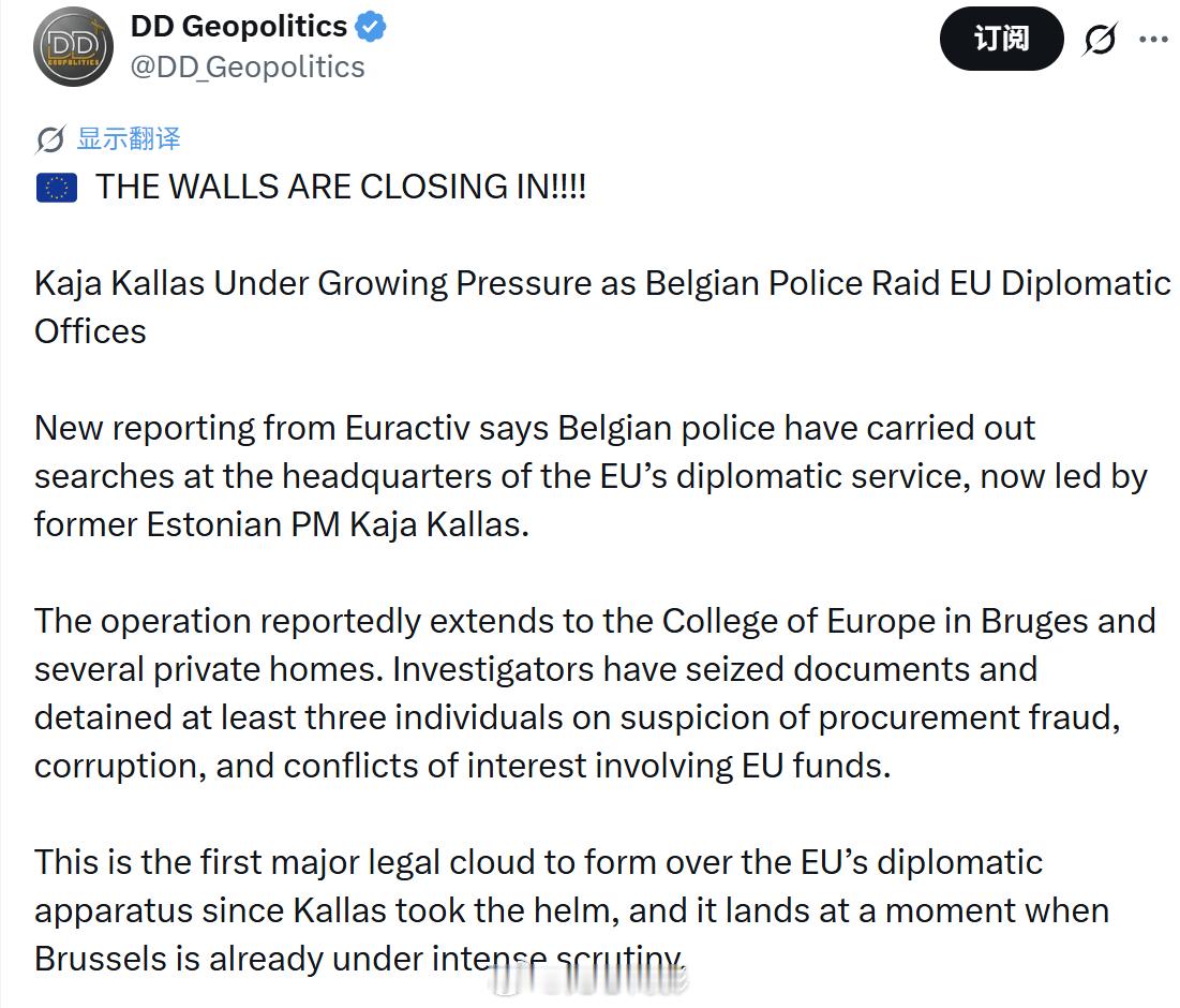 欧盟宫斗戏还在继续,傻大姐卡娅·卡拉斯看来输的很彻底,就是斗不过冯德莱恩啊海外新鲜事
