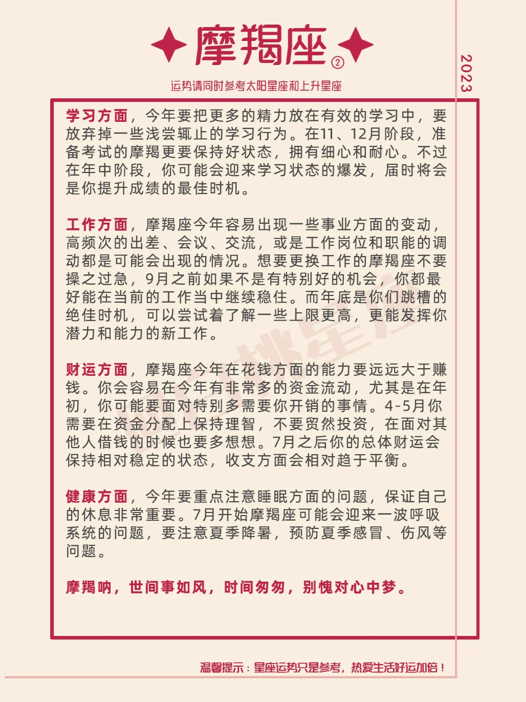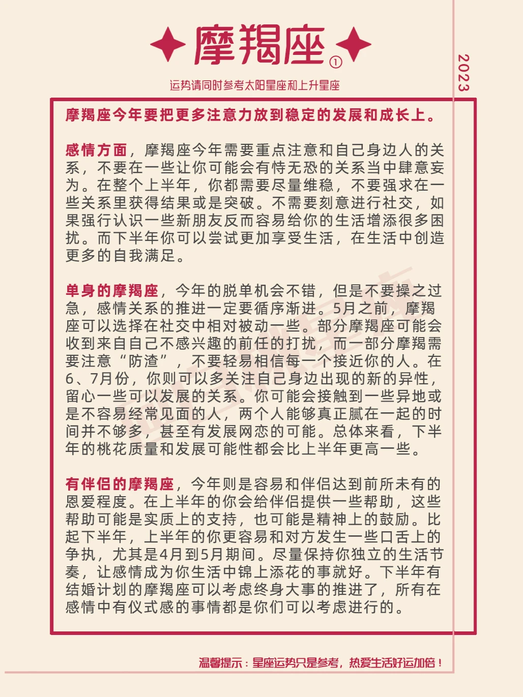 『白桃星座』摩羯座2023年运