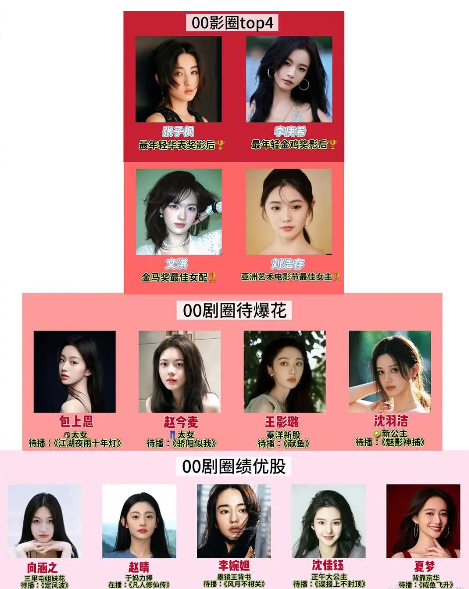 王梓莼自己比肩00花被嘲笑了 娱乐圈好多艺人确实被自己的经纪人和经纪团队哄得分不清自己的真实咖位了,王梓莼确实是00花张子枫的室友,但是说自己是00花确实有点看高自己了,但是想要成为小花,是有一定条件的,85后女演员那么多,但是能称得上85花的也就五六个人,能称得上90花的也就两三个,最主要还是因为花不但要有流量,还要有一定咖位和实绩,现在能称得上00花的也就张子枫,赵今麦,刘浩存和李庚希,其他都到不了00花的梯队。