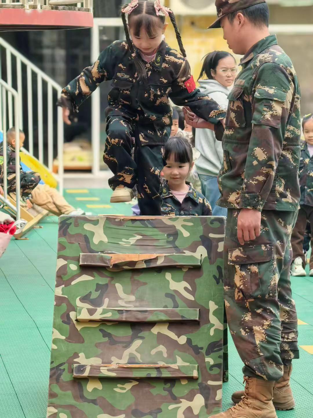 这组萌娃迷彩照也太可爱啦!小小“兵娃娃”集合完毕,站得笔挺的小身板里藏着满满的认真✨ 训练时踩着障碍板的小碎步,被教官稳稳护着的样子,又萌又飒~