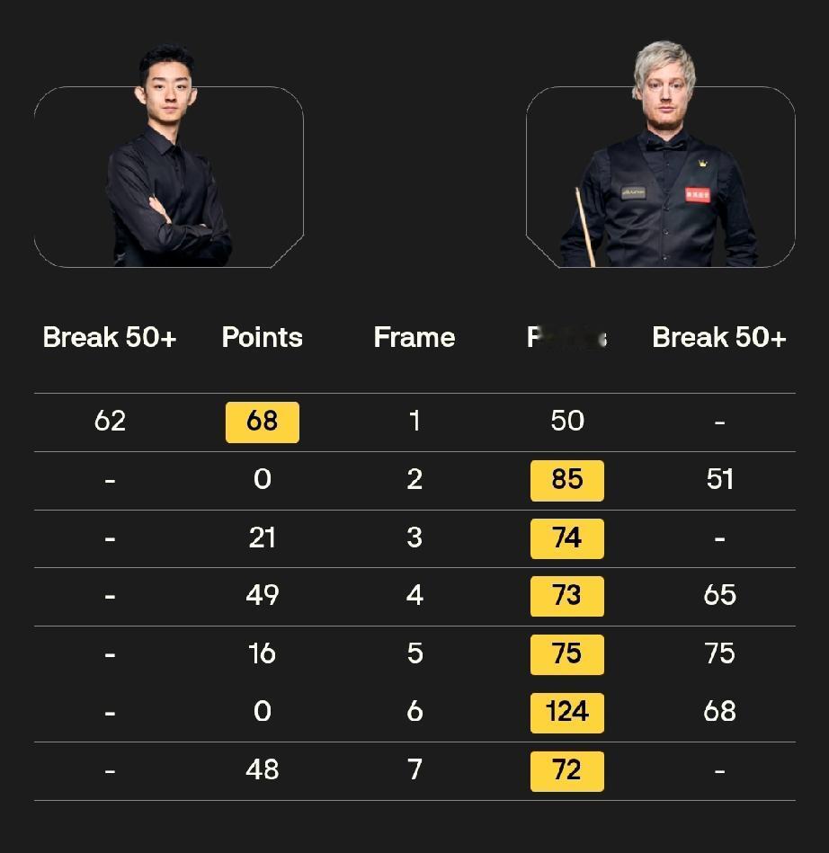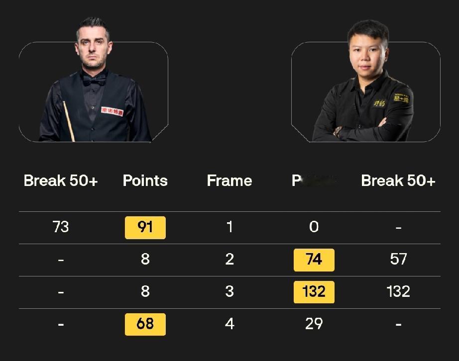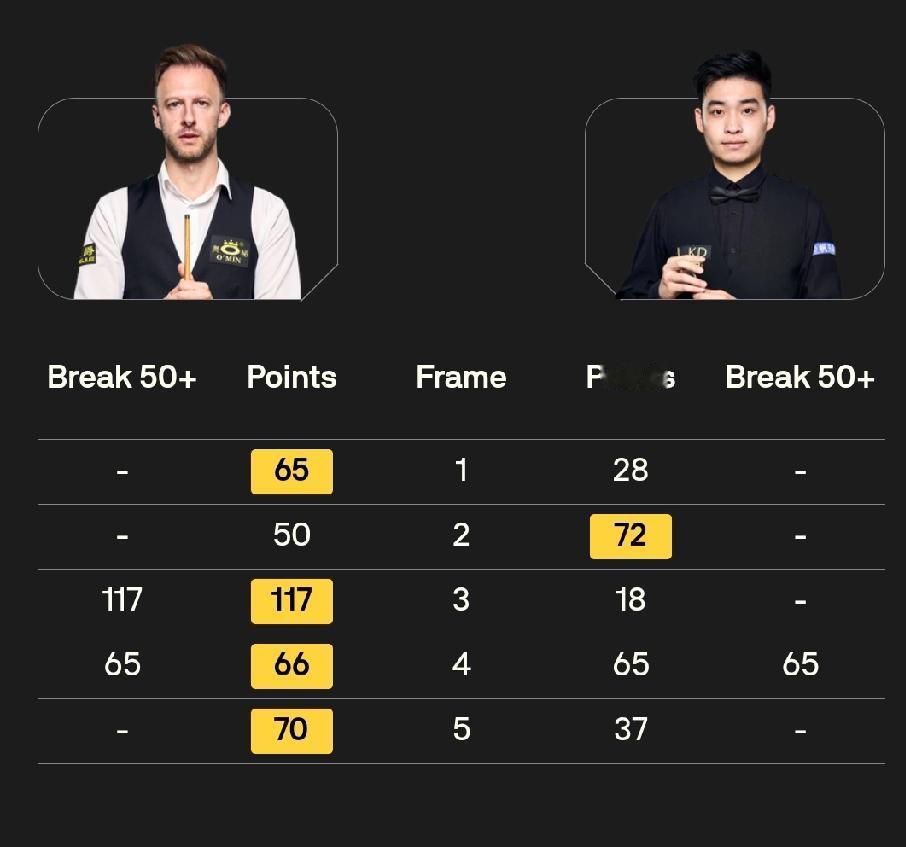 周跃龙 2-2 马克·塞尔比 斯佳辉 1-4 贾德·特鲁姆普 12月4日凌晨三点,2025斯诺克英锦赛16进8轮次第三场和第四场比赛开始。中国球员周跃龙对阵马克·塞尔比、斯佳辉对阵世界第一贾德·特鲁姆普。 在已经结束的两场比赛中,庞俊旭6-3淘汰“75三杰”之一的马克·威廉姆斯,晋级八强!吴宜泽先赢一局,随后遭遇六连败,1-6不敌尼尔·罗伯逊,止步16强。 前四局,周跃龙打出单杆132分、57分,2-2战平马克·塞尔比。斯佳辉1-3落后贾德·特鲁姆普。
