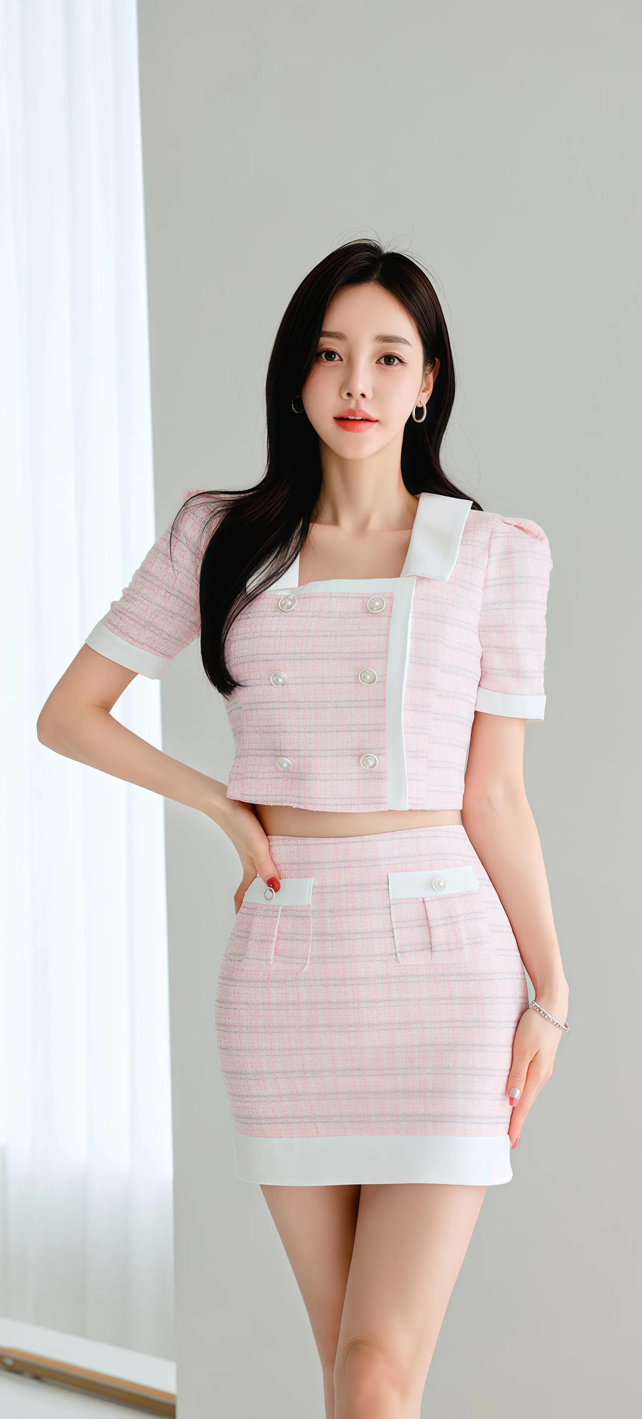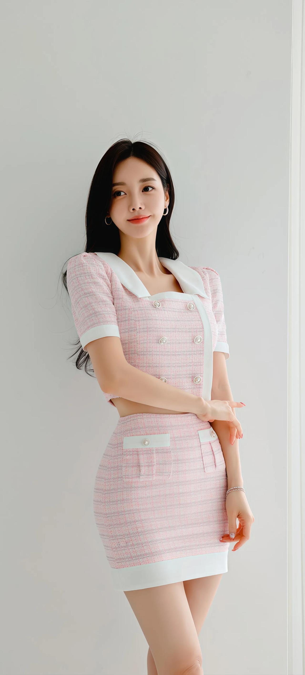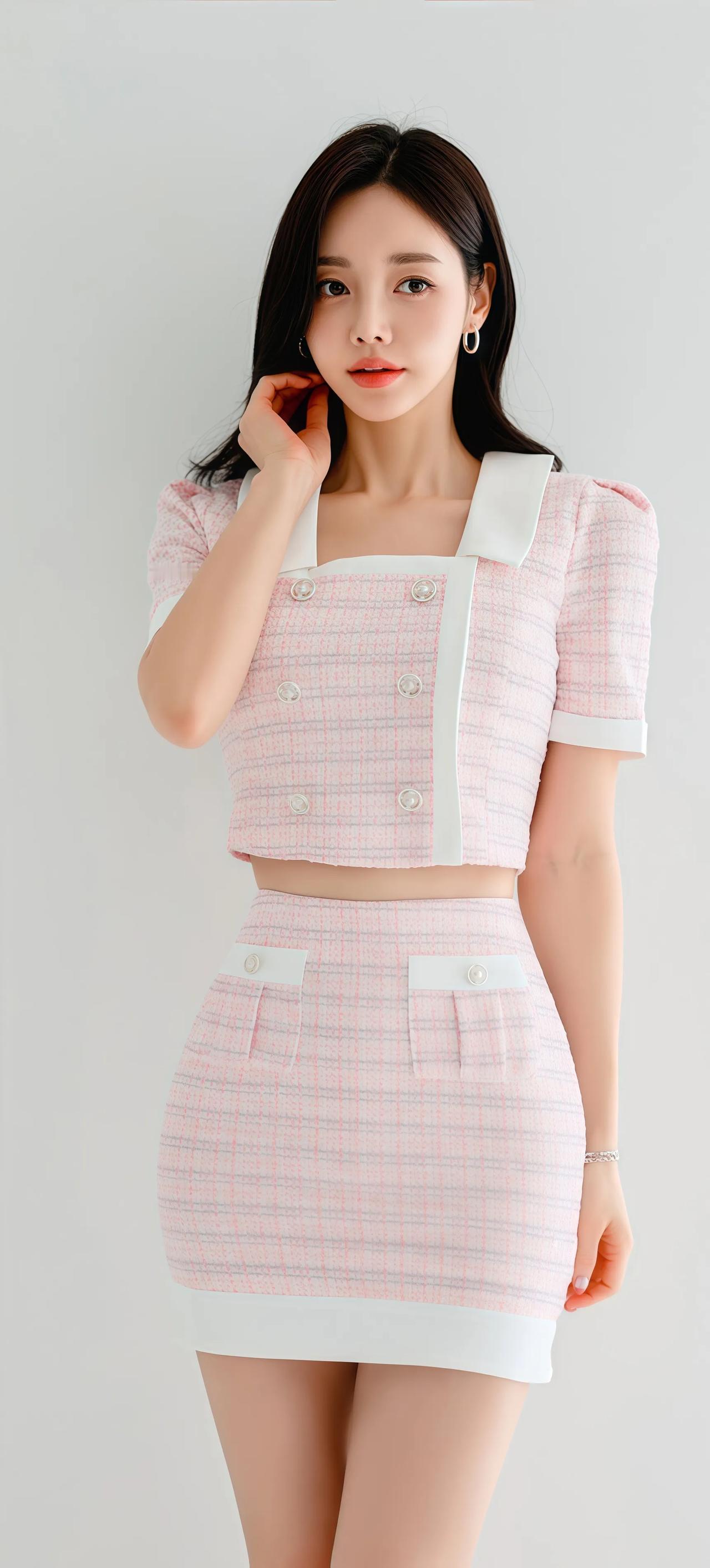 甜美少女风穿搭,粉色格纹连衣裙,清新自然,元气满满!🌸💕