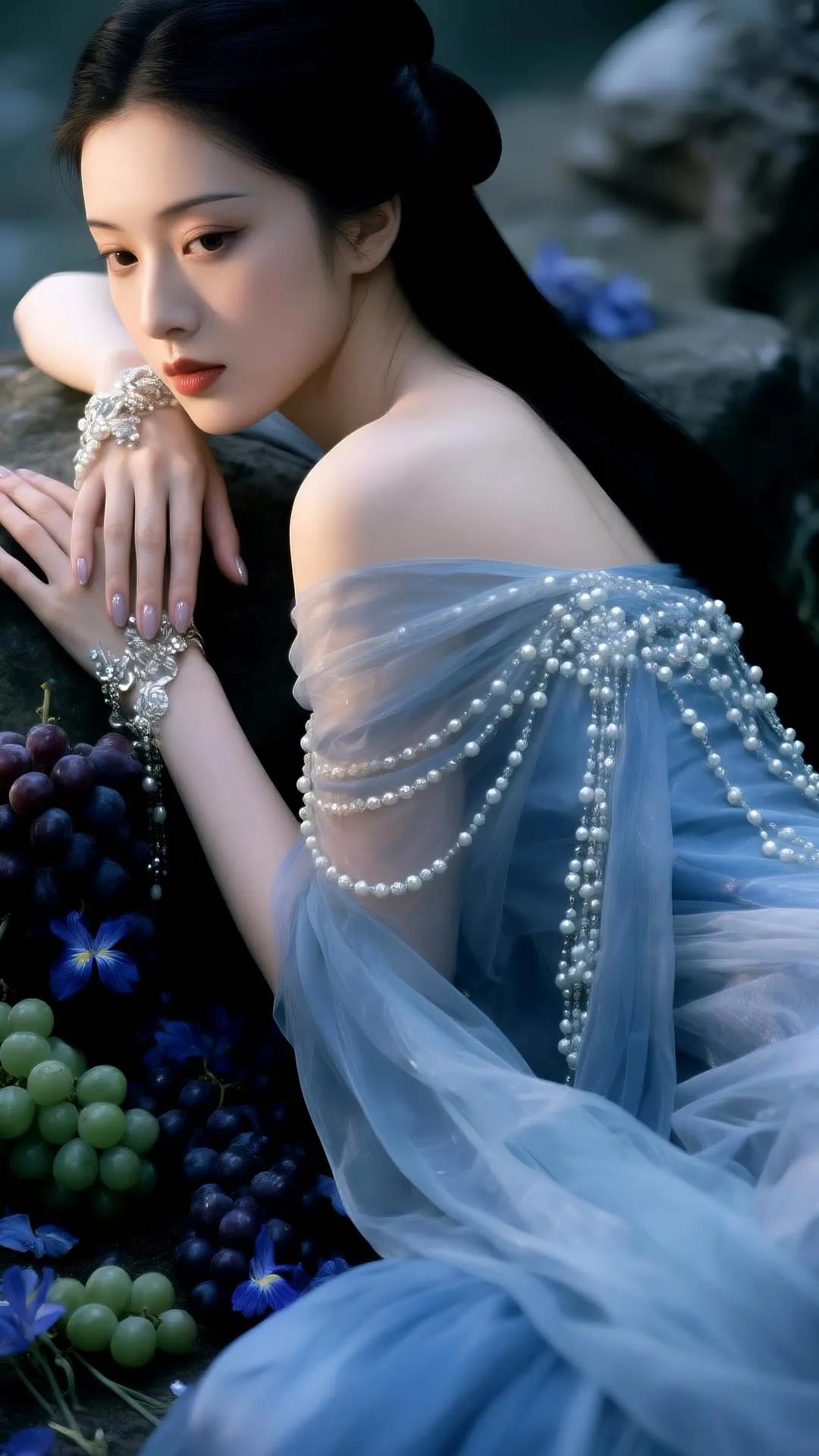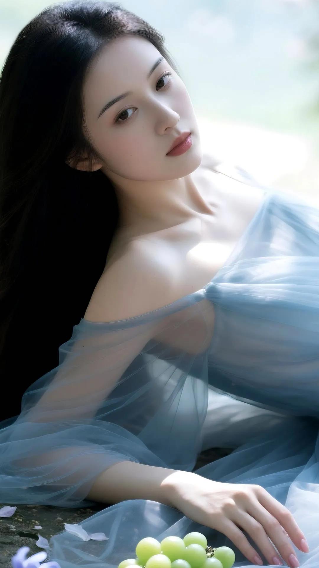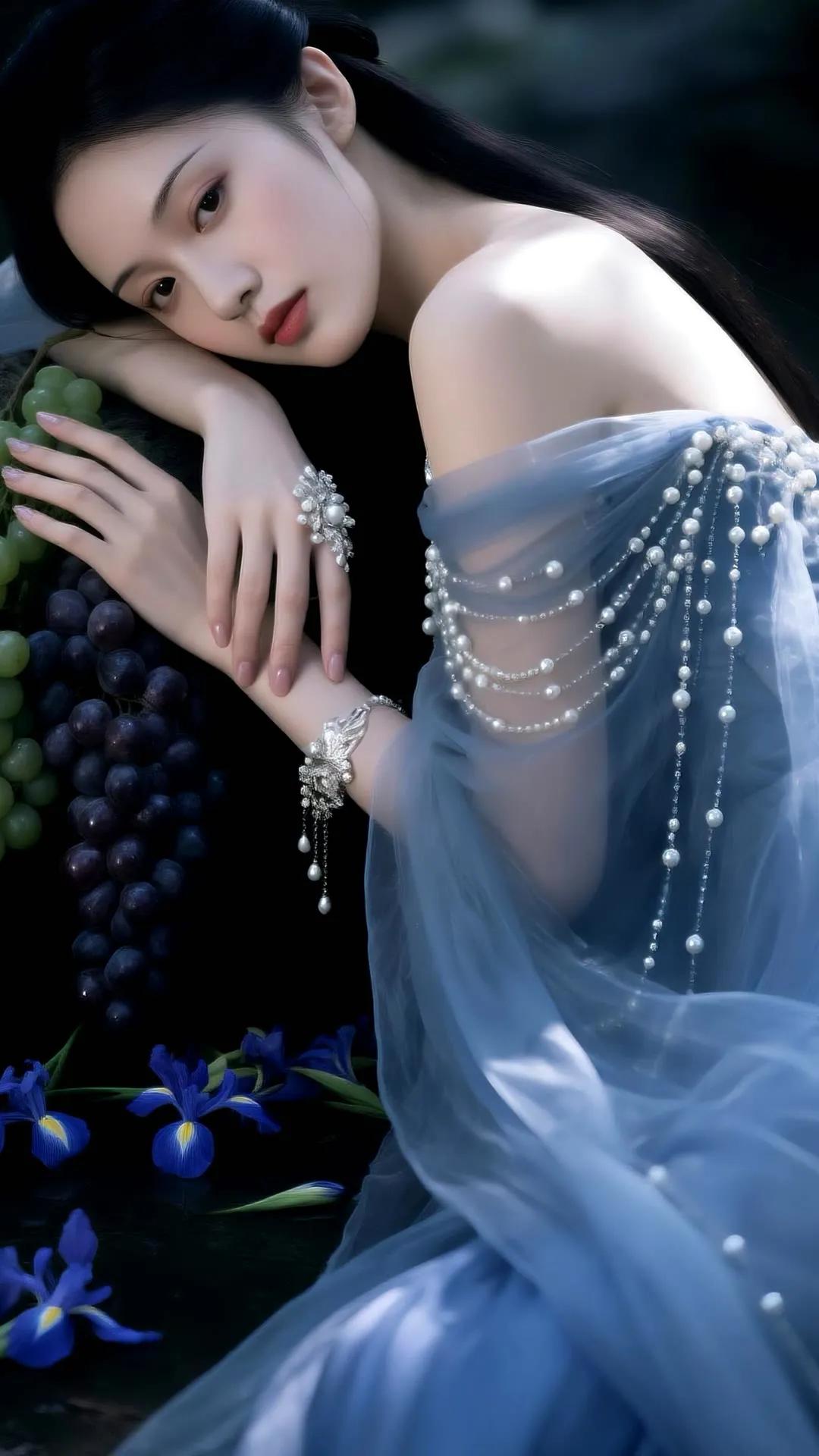 温柔古风少女,青纱飘逸,花枝招展。淡雅如雾,柔情似水,一袭青纱诉说古韵悠然。