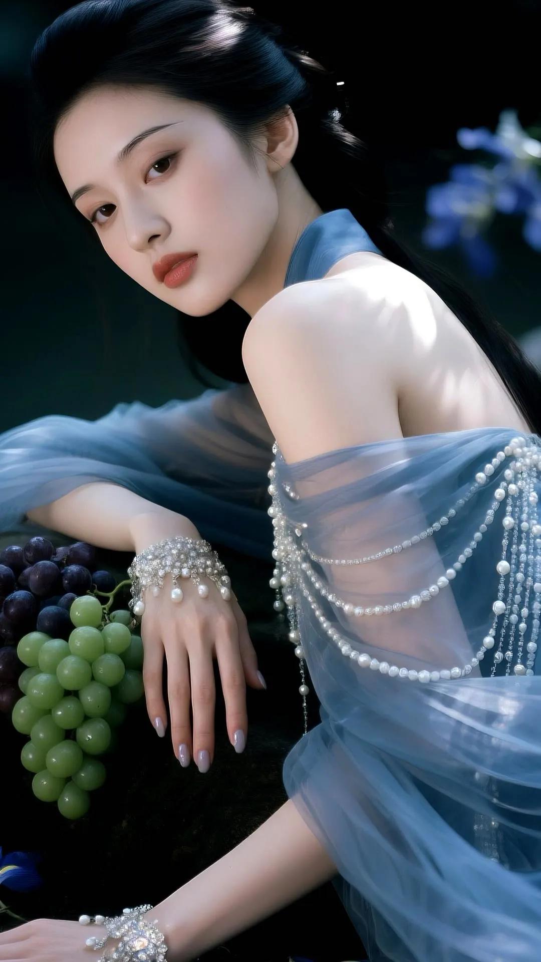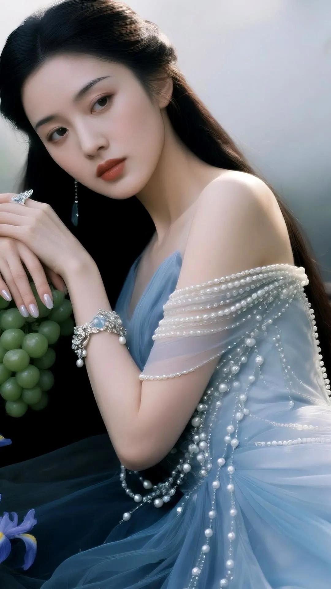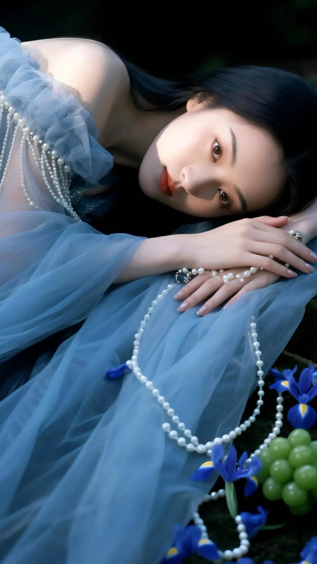 温柔古风少女,青纱飘逸,花枝招展。淡雅如雾,柔情似水,一袭青纱诉说古韵悠然。
