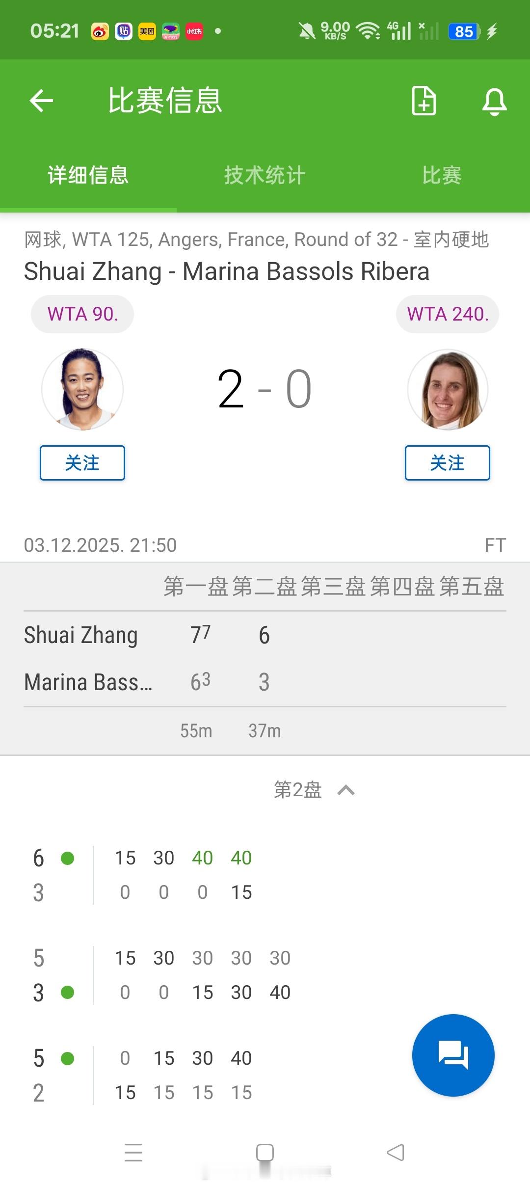 小花小草资讯小花小草资讯【WTA125🇫🇷昂热】女单正赛第一轮🇨🇳张帅7-6(3)6-3击败🇪🇸球员巴索尔斯 晋级第二轮张帅收获15分即时排名85(+5)下轮对手是🇩🇪老将巴瑟尔头对头0-4