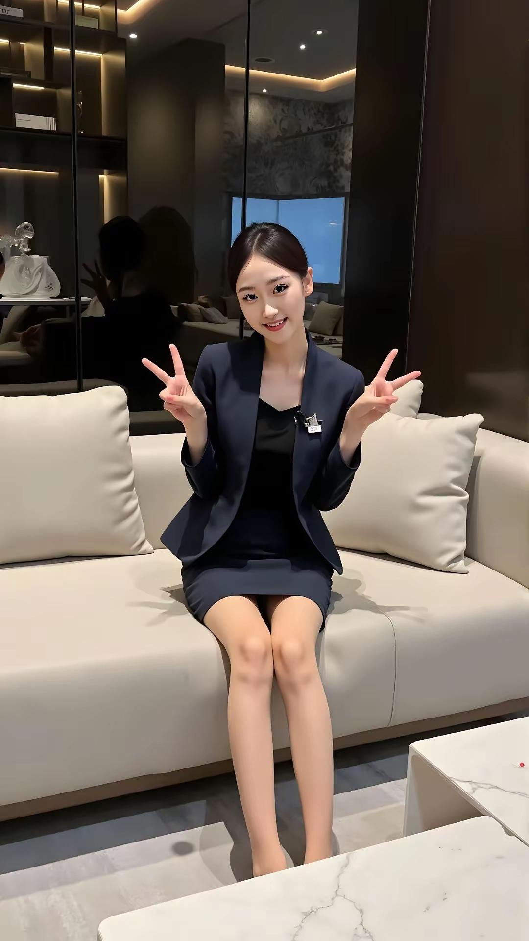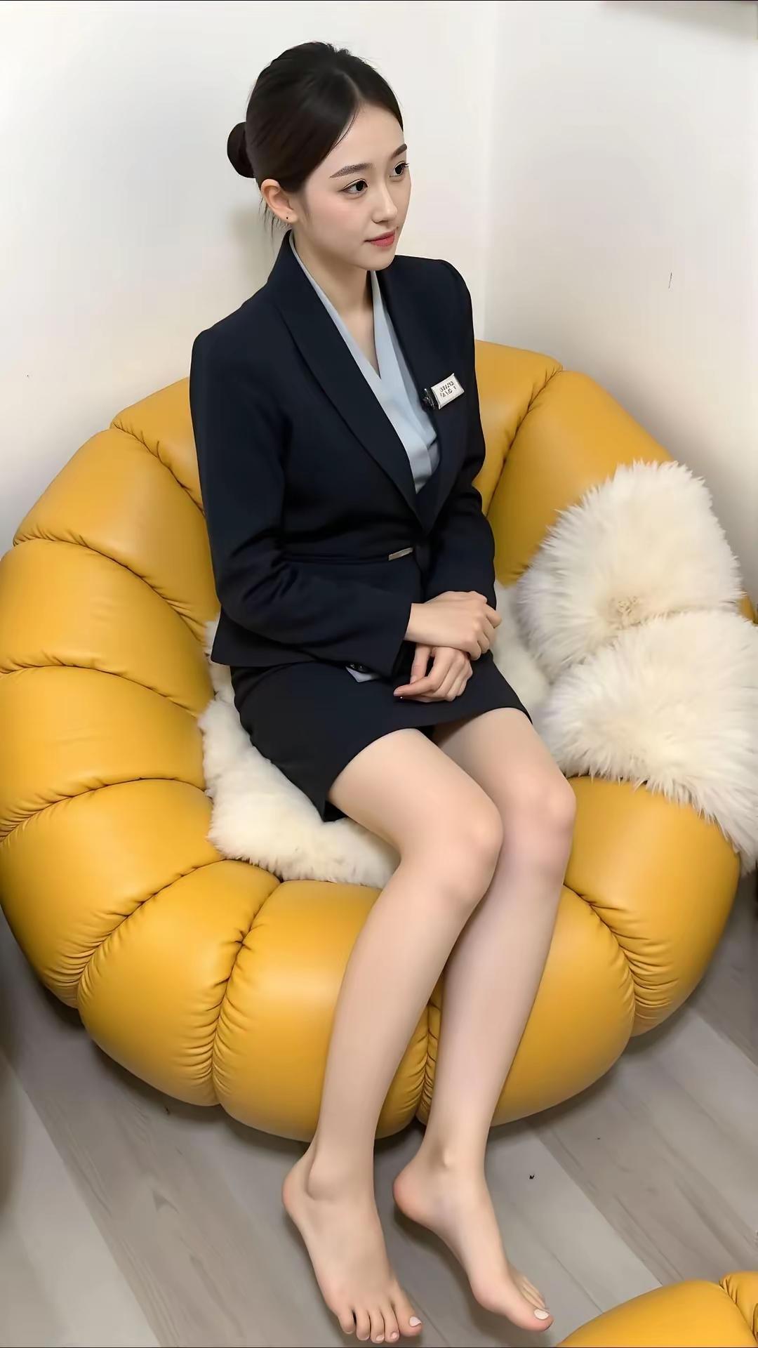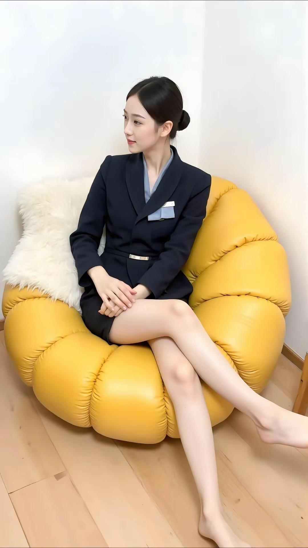 优雅职场风,黑西装搭配毛绒坐垫,尽显时尚与舒适!
