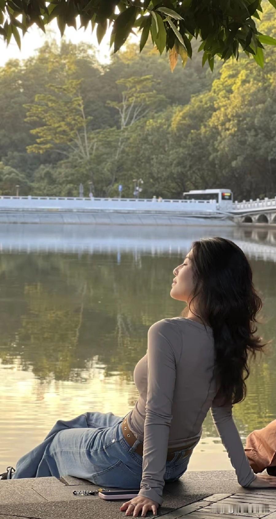 海边微风拂面,少女轻闭双眼,享受宁静时光。