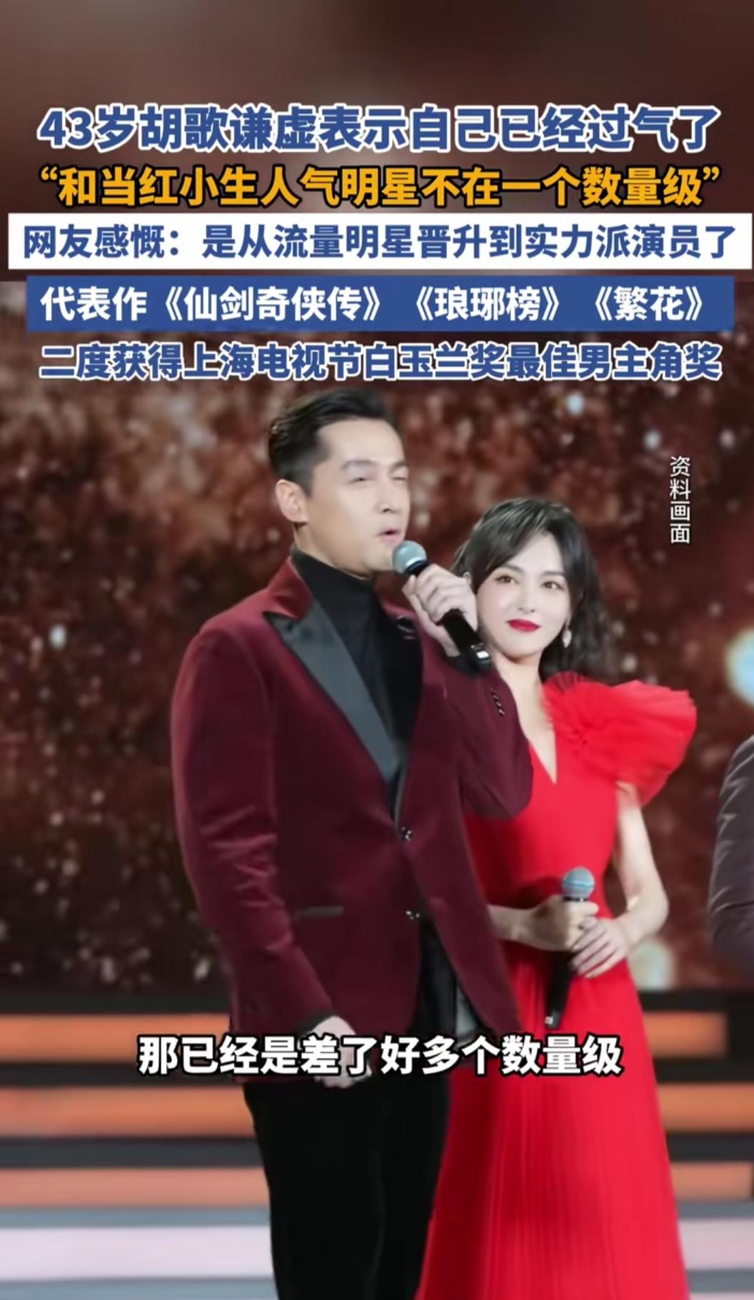 谁能想到,曾经的顶流胡歌,如今在节目里直言自己“过气了”,和当红小生不在一个数量级。这话一出,瞬间戳中了无数人的泪点。 这话是胡歌在《共同说》第三季里说的,节目里他还和主持人登山、下厨,聊起事业和家庭满是感慨。当年《琅琊榜》里的梅长苏,可是火遍大江南北。 其实胡歌不是真的过气,而是早就跳出了流量的怪圈。他坦言自己平衡事业家庭很失败,遗憾错过女儿成长,还提到母亲希望他接更有深度的剧本。 比起那些拼命维持热度的明星,胡歌的清醒太难得。人到中年,谁不是一边告别过去的辉煌,一边学着接受生活的不完美? 不追逐流量,只专注内心的选择,这样的胡歌,反而更让人喜欢。希望我们都能有这份坦然,接纳人生的每一个阶段。