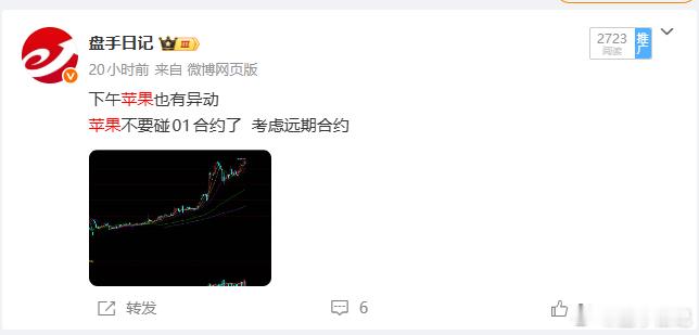 昨天提示了苹果有异动,01下跌空间有限,但05或将逐步步入回调节奏!早盘V+中已经提示今天苹果机会!苹果期货
