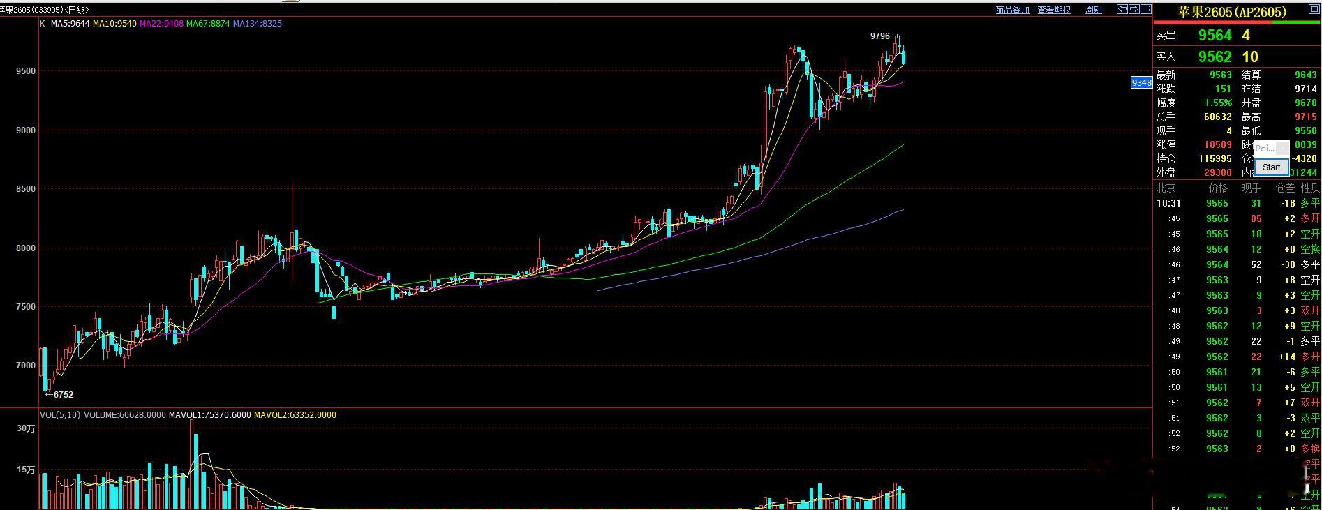 昨天提示了苹果有异动,01下跌空间有限,但05或将逐步步入回调节奏!早盘V+中已
