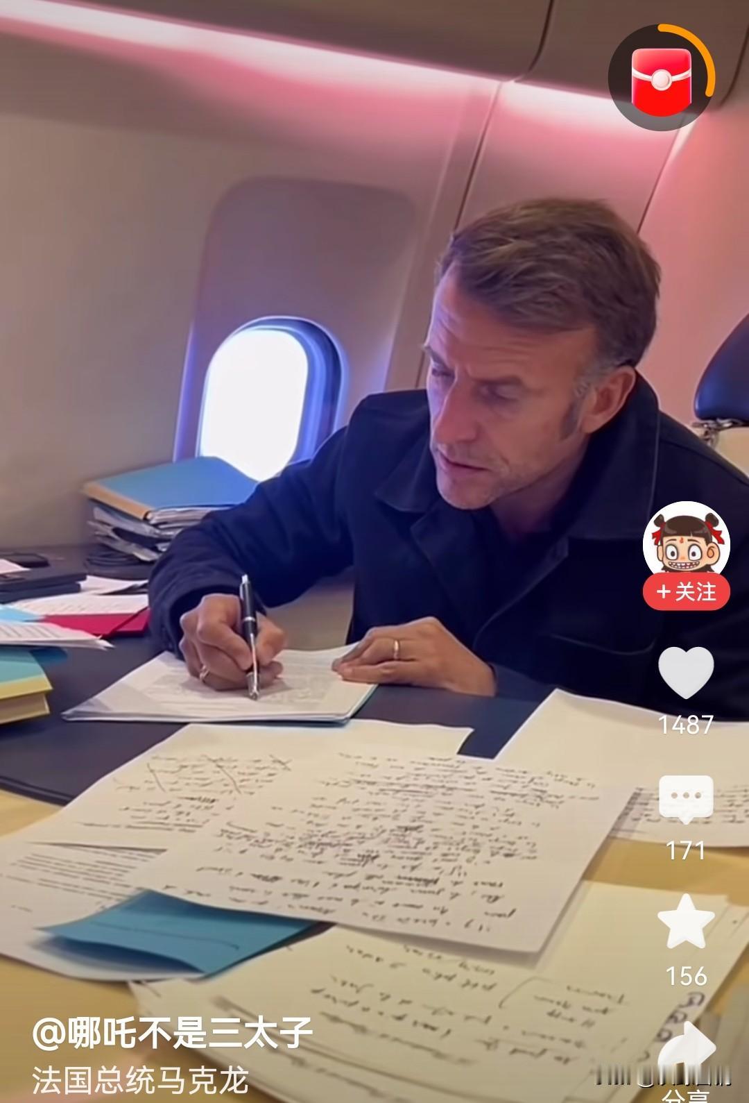 马克龙这次来没有红地毯! 在飞机上,马克龙也很忙的,还在阅读文件,不过这次没有红地毯,也是告诉马克龙,有些人事情,我们给你了,而你则不听,曾经给你脸,你非要昂起高傲的头颅,这次就不会惯着你。