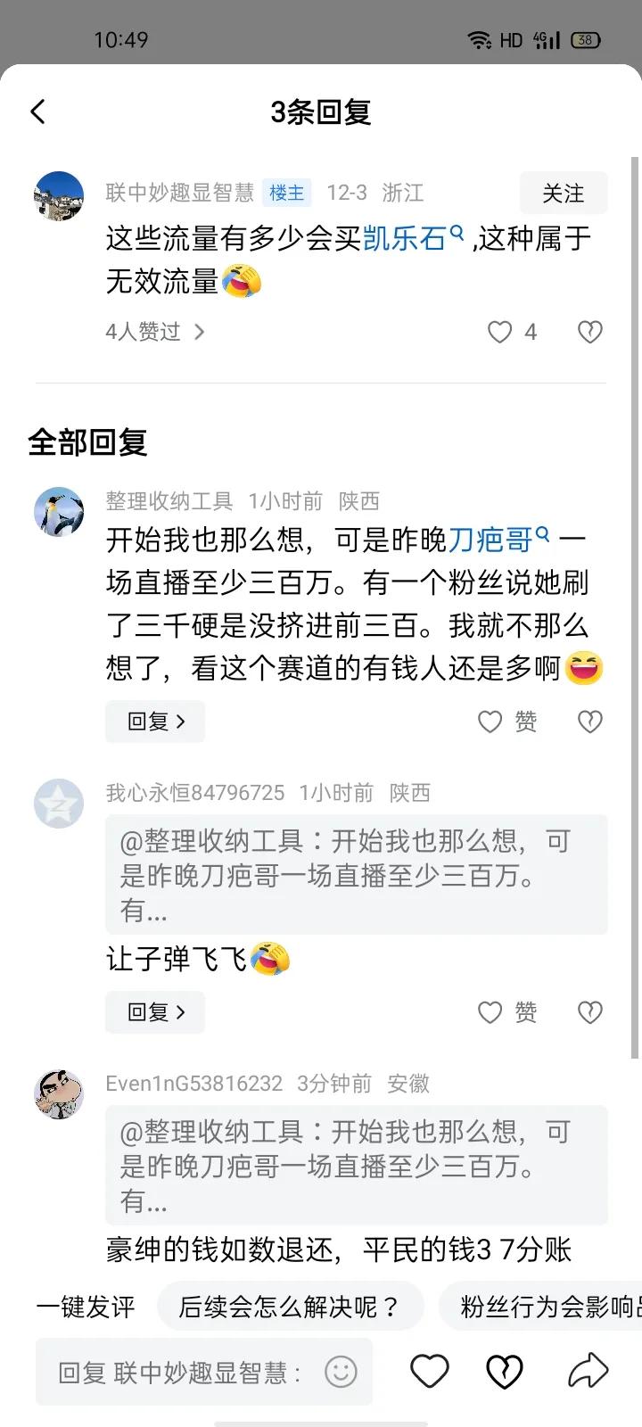 刀疤哥的流量太大了,粉丝太激进了!竟然跑去凯乐石的直播间不让女主播下播。 要求