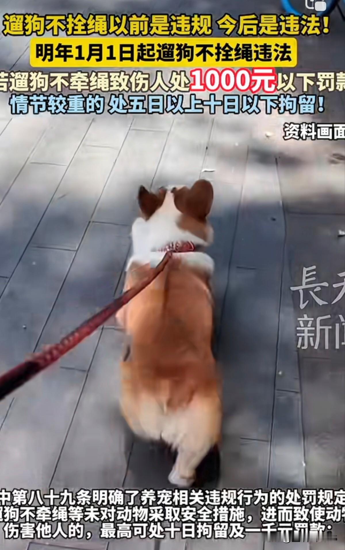 养狗的朋友们可得注意了!以后再遛狗不拴绳可就是犯法了! 从2026年1月1日我国新修订的治安管理处罚法明确规定,但凡遛狗不拴绳的被查到那就是违法了,如果遛狗不牵绳将人致伤的将处于1000元以下罚款,情节严重的处于五日以上十日以下拘留 这回国家是动真格的了,别在以为拴不拴绳遛狗都无所谓,也别再以为自己侥幸不会被查到,这回可是真的罚啊!