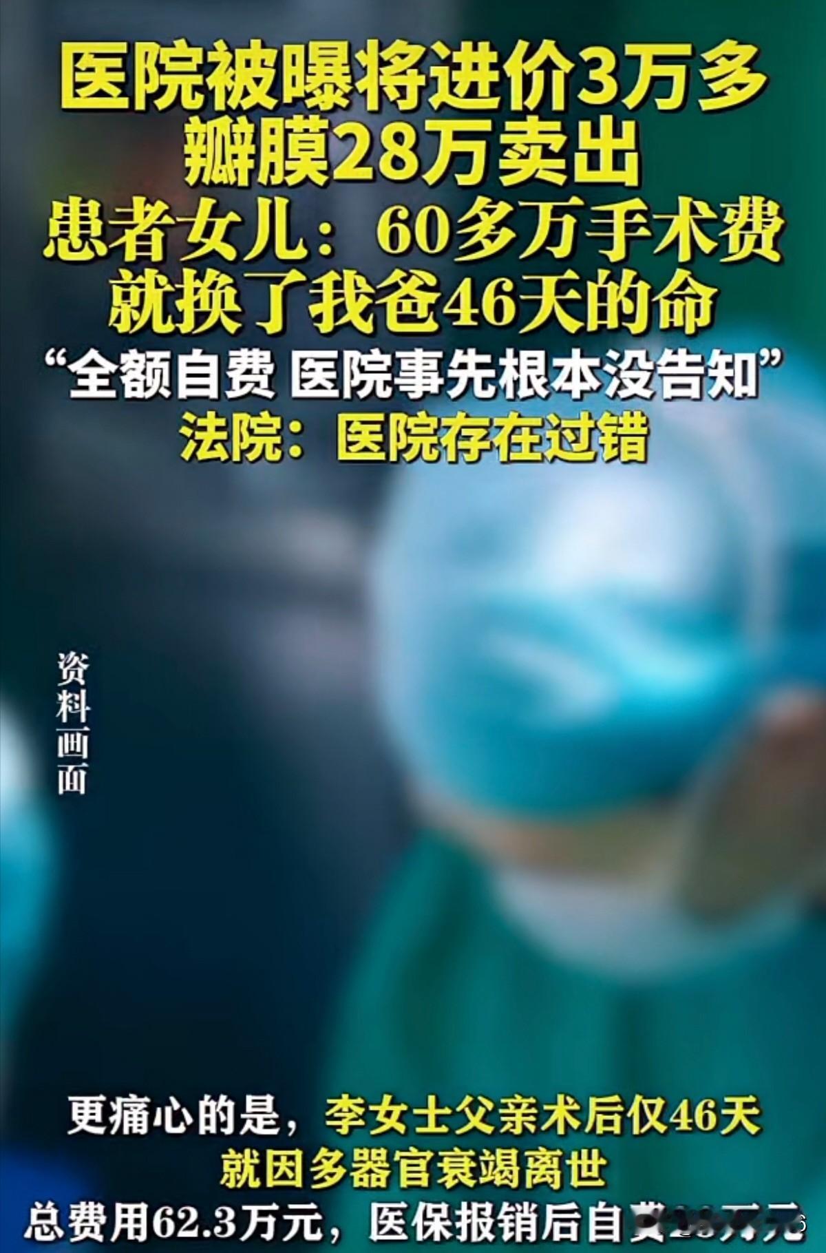 三万进价的心脏瓣膜竟然卖患者28万?这个医院是不是有点太黑了? 患者女儿李女士说