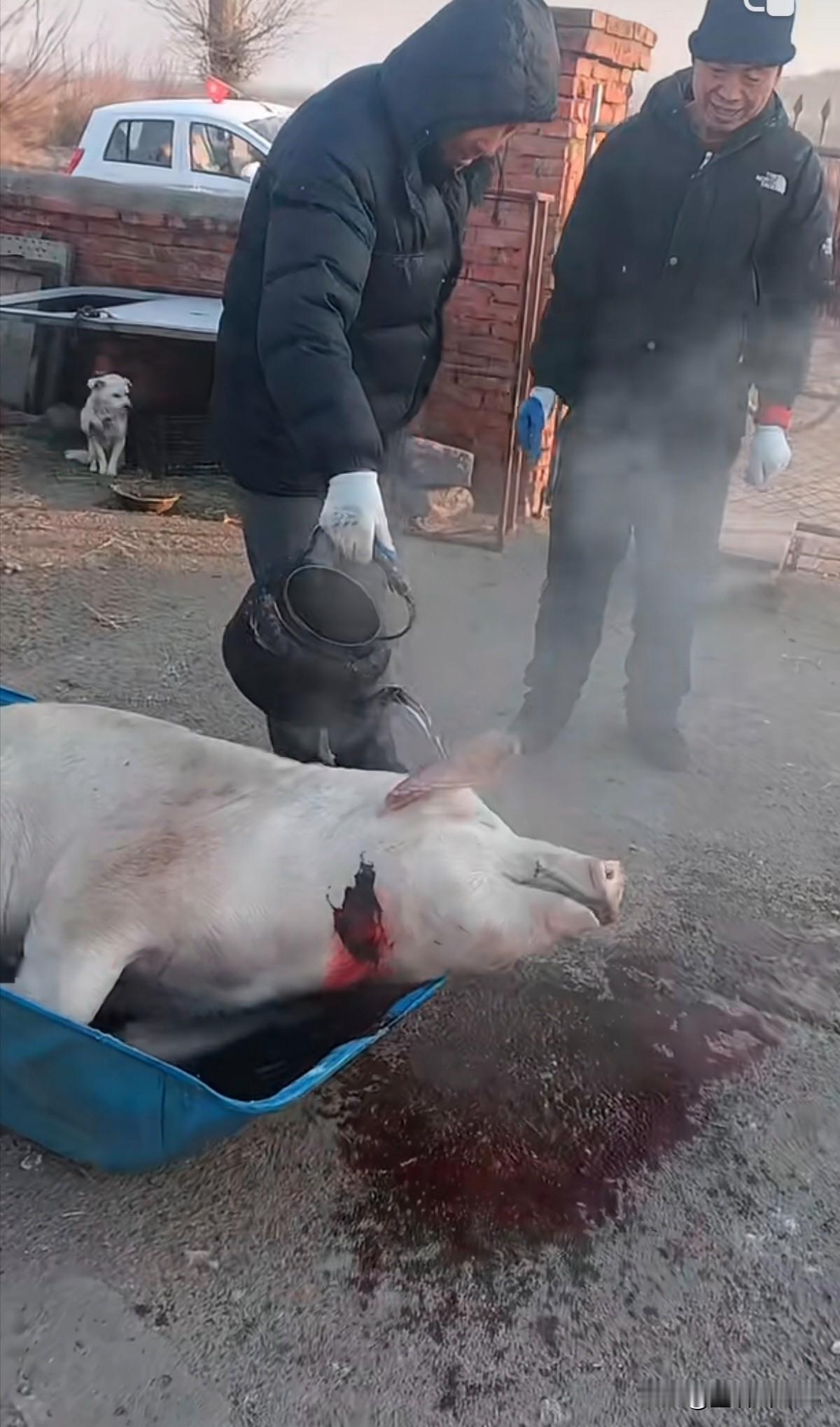 杀生不虐生,可有的人便要这么做! 这头猪还没有完全死,这个人就迫不及待了 他笑呵呵的拿着滚烫的开水直接浇到了猪的身上,那种滋味得多疼。 旁边站着的人也是一脸幸灾乐祸的笑着 猪生来就是被人吃的,但能不能等它死了之后再用开水浇它呢?难道就差这一小会吗?
