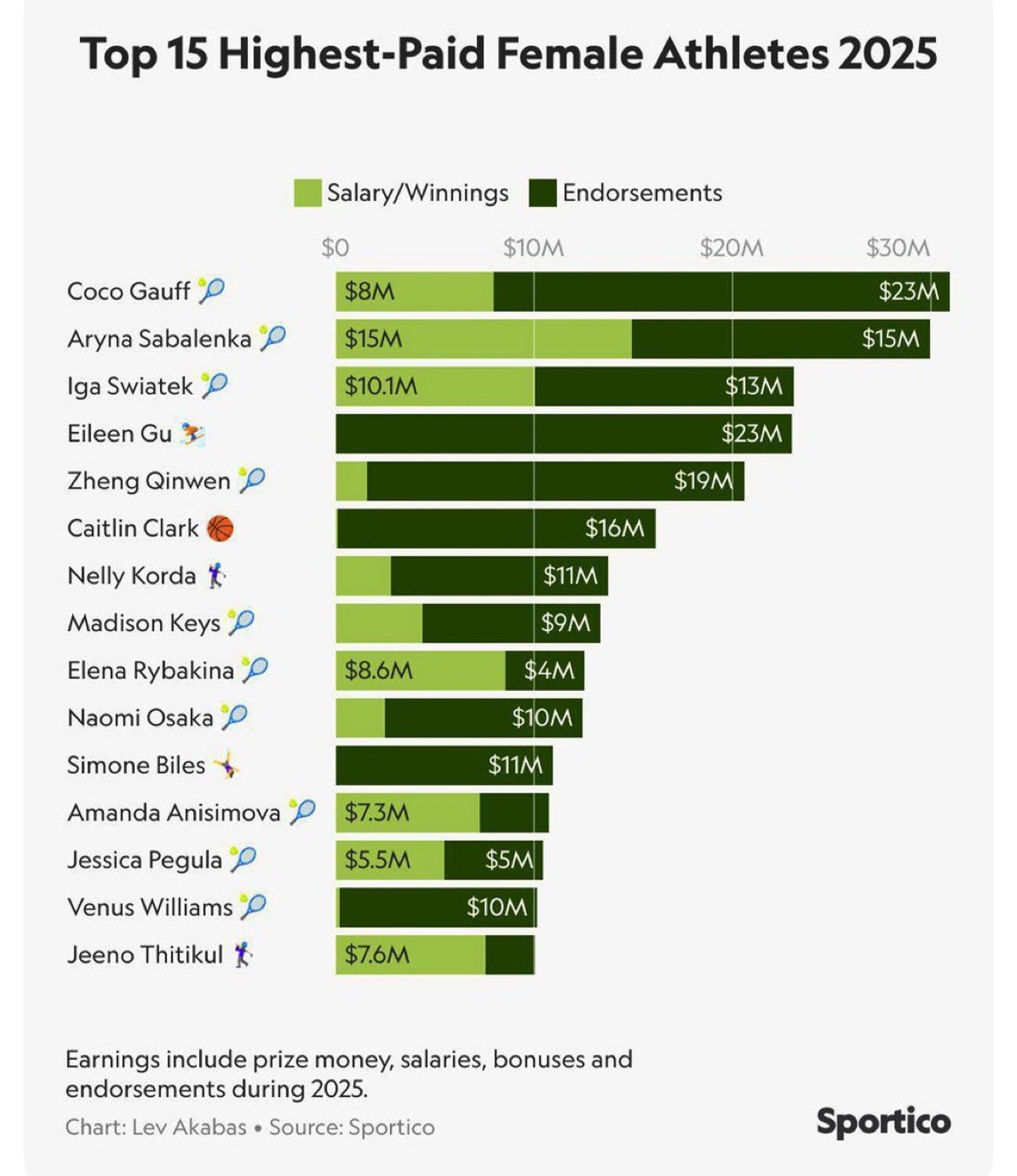 网球talking大会 郑钦文全球女运动员收入榜第5女子选手收入榜网球霸榜 女子网球运动员收入丰厚!在收入最高的15位女运动员中,有10位是网球运动员🔥,依然是行业标杆👑高芙、萨巴伦卡、斯瓦泰克排名前三,郑钦文第五,大威第十四!另外,谷爱凌第四。