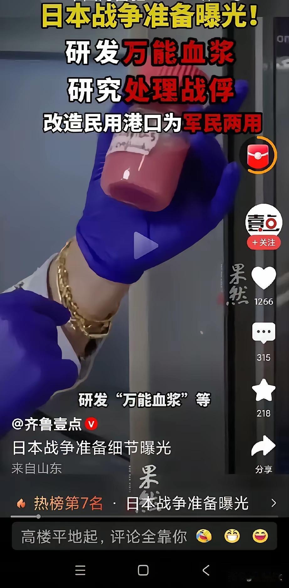 现在有一批从国外回来的,在西方国家有关机构的资助下,慢慢的在演变我们的国家,因为西方知道用武力、颜色革命对付我们肯定行不通,那只有通过资助这样一群人用20年、30年逐步演变,希望国家真的要特别重视了,特别是“教育不能动、法律不能动、宣传不能动”这三样必须零容忍。 这话听起来挺远的?其实一点儿也不。有些较量,就发生在眼皮子底下,用的就是“温水煮青蛙”的法子。他们知道明刀明枪打不赢,就换个打法,资助一些人,搞长期渗透,从思想根子上动摇你。这就像给房子挖墙脚,一天挖一点,外面看着没事,里头已经空了。所以咱们才说,教育、法律、宣传这三个命根子,动不得,一动了,魂儿就没了。 不过今天,咱先不细聊这个“演变”,因为眼前有个更直观、更咄咄逼人的动静,让人没法不盯着看——咱们东边那个老邻居,日本,最近可是动作频频,一副撸起袖子要“硬碰硬”的架势。这倒让我们看清了,挑战不止有“文”的一手,还有“武”的一招。 你看日本最近都干了啥。他们新首相高市早苗上台没几天,大手笔就来了。政府刚批准了2025财年的补充预算,硬是把防卫开支占GDP的比例,提前两年拉高到了2%。算下来,一年军费接近11万亿日元,合人民币将近5000亿。这钱不是一年这么花,是连续13年一路上涨。他们国内都有教授和媒体看不下去了,说这么庞大的开支,挤占了民生、福利、教育的钱,是罔顾民生。 光有钱还不行,还得有家伙事儿。这笔钱里,大几千亿日元是用来买导弹、造军舰潜艇的。他们把改进型的03式地对空导弹,加速部署到了最西边的与那国岛,那地方离中国台湾地区只有110公里。这摆的是什么阵,明眼人一看就懂。 更值得警惕的是,日本的野心早就突破了地面和海洋。他们计划明年把航空自卫队改名叫“航空宇宙自卫队”,把太空部队升级成“宇宙作战集团”。名字听着科幻,实则是要搞太空军事化。一边在西南岛屿加强导弹部署,一边把眼睛瞄向宇宙,这种全方位的“扩武”,早就背离了战后“专守防卫”的承诺。有专家说得直白,日本这是在寻求远洋作战和主动进攻能力,给整个亚太地区的安全格局带来冲击和破坏。 日本人为什么这么急吼吼地扩军备战?他们一些政客心里拨拉的小算盘,恐怕和几十年前一样。他们或许盘算着,只要不先开第一枪,不主动进攻,就能躲在所谓“防卫”的幌子后面,毫无顾忌地壮大军事肌肉。他们以为这样就能赢得时间,积累筹码,甚至幻想着在某一天可以“扭转局面”。这种心态,根子上就没变。 一说起这个“根子”,咱们中国人,特别是东北的同胞,心里的火“腾”一下就起来了。为什么?因为一提到日本搞这些生物、医学相关的尖端东西,我们没法不想到“731”这个魔窟一样的代号。那不是历史书里轻飘飘的一页,那是刻在民族记忆里血淋淋的伤疤。 就在今年,俄罗斯联邦安全局公布了一批最新解密的档案,把731部队的罪行再次钉在耻辱柱上。档案里描述的场景,简直是人间地狱:他们把活生生的中国人绑到野外,发射装满鼠疫、炭疽病菌的炮弹,然后再把尸体和病人拉回去,统计感染率,评估“武器效果”。这哪是什么研究,这是魔鬼的流水线。南京的“1644部队”等731的“姊妹部队”,同样在活人身上进行各种实验,把科学伦理践踏得粉碎。 这些罪行铁证如山。近年来,中俄等国不断公布新的档案、史料和原部队队员的口述证言,证据链环环相扣。可日本右翼势力是怎么做的呢?他们非但不好好道歉反省,反而在教科书里把“731部队”轻描淡写为“从事卫生研究的单位”,拼命想擦掉“人体实验”和“细菌战”这些关键词。这是一种系统性的“历史漂白”,是想从下一代开始,彻底遗忘和否认罪责。一边竭力掩盖历史上的反人类罪恶,一边大力扩充现实中的杀人武力,这套组合拳,让人不得不警惕其军国主义的幽魂是不是又飘回来了。 所以,当我们看到日本政客叫嚣着要把“台湾有事”当成自己的“存亡危机”,甚至暗示要武力介入时,中国人说“新账旧账一起算”,绝不是一句气话。这“旧账”,往近了说是十四年抗战的血海深仇,再往前倒,那就得从1894年的甲午战争算起。正是那场战争,日本割走了我们的台湾,拿走了巨额的赔款,用它作为扩张的第一桶金,也埋下了中华民族百年屈辱的祸根。现在他们又对台湾问题指手画脚,这不是历史的重演是什么? 日本人可能误解了一点,认为今天的中国还会忍气吞声。他们打错了算盘。 各位读者你们怎么看?欢迎在评论区讨论。 权威媒体报道信源: 本文中关于日本防卫费提升至GDP2%及国内担忧的论述,综合参考了中央广播电视总台旗下央视新闻及国际在线的报道;关于731部队罪行新证及日本历史修正主义行为,参考了中国新闻网及黑龙江日报的报道。