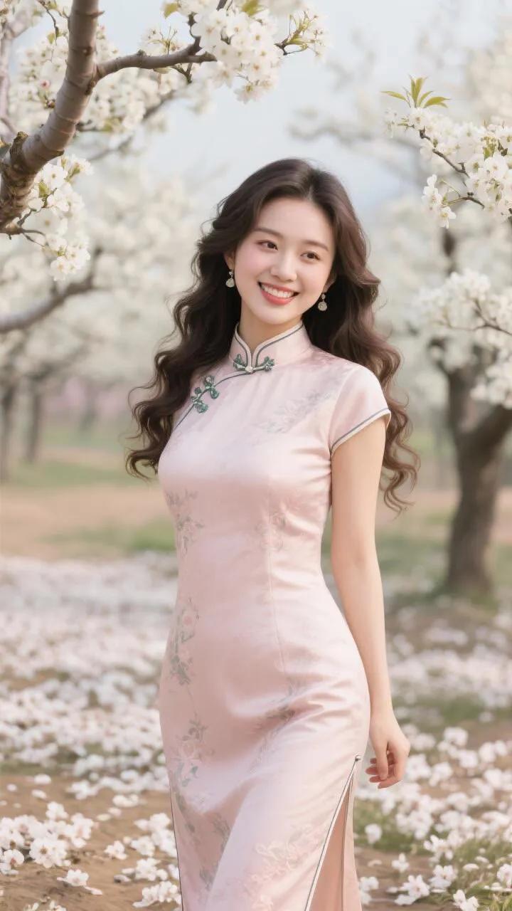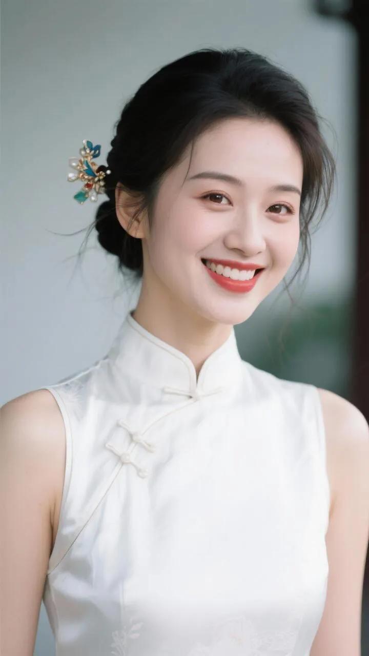 优雅红衣女子,笑靥如花,古典韵味十足。