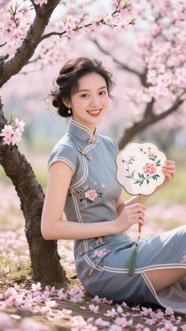 温柔古风少女,青纱飘逸,花枝招展。淡雅如雾,柔情似水,一袭青纱诉说古韵悠然。