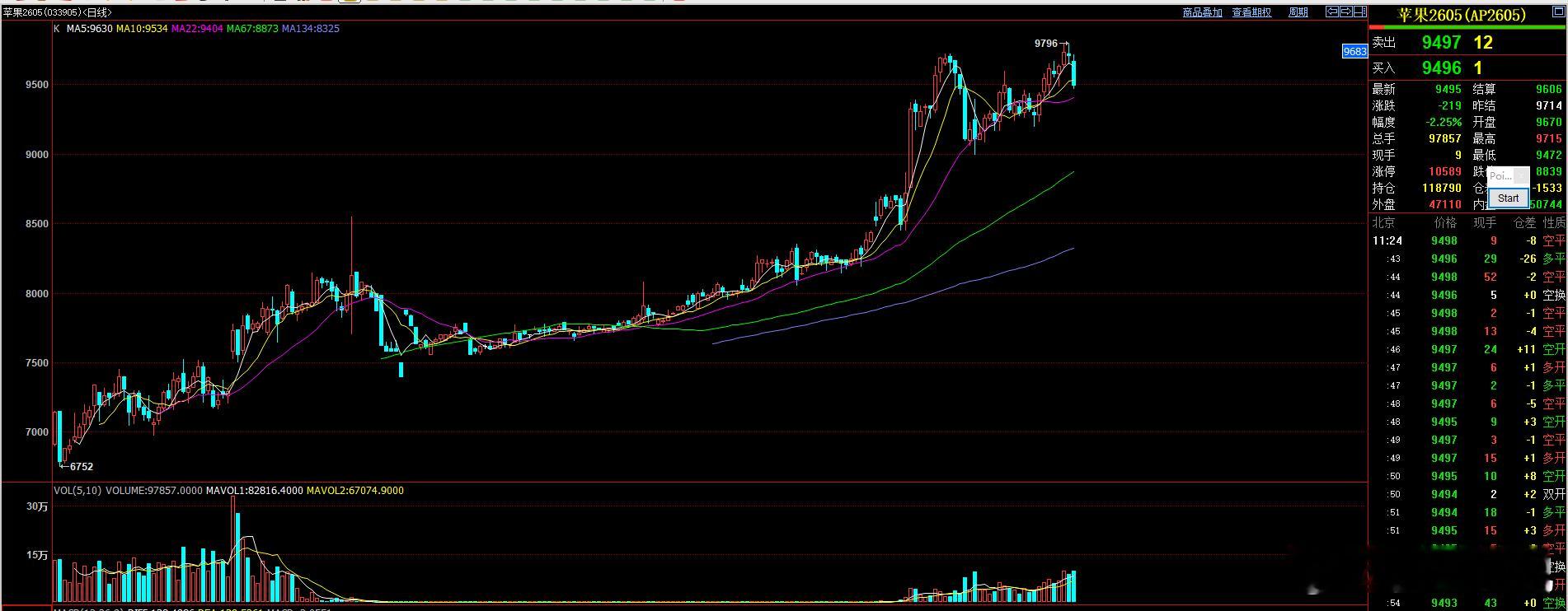 昨天提示了苹果有异动,01下跌空间有限,但05或将逐步步入回调节奏!早盘V+中已