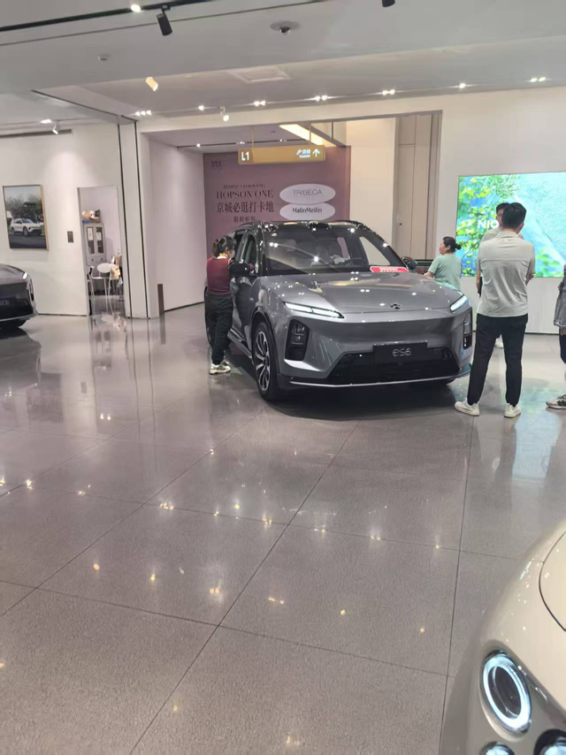 去牛屋看新款 新款es6和ec6在今天原来也已经进入了展厅,今天路过牛屋看到人还蛮多就去凑了凑热闹,这两款车乍一看和老款差别不大,但是细看会发现他的车灯变成了四边形,和老款相比更加犀利,更加有力量感,新增了月辉银这个颜色(很好看),还有新款的21寸轮毂。内饰方面nomi动作更加丰富了,还有流媒体后视镜,hud也比老款更大(据说带了什么神玑安全影像),中控下面的空间也变得更加巨大,座椅更大更宽,包容性更强了。