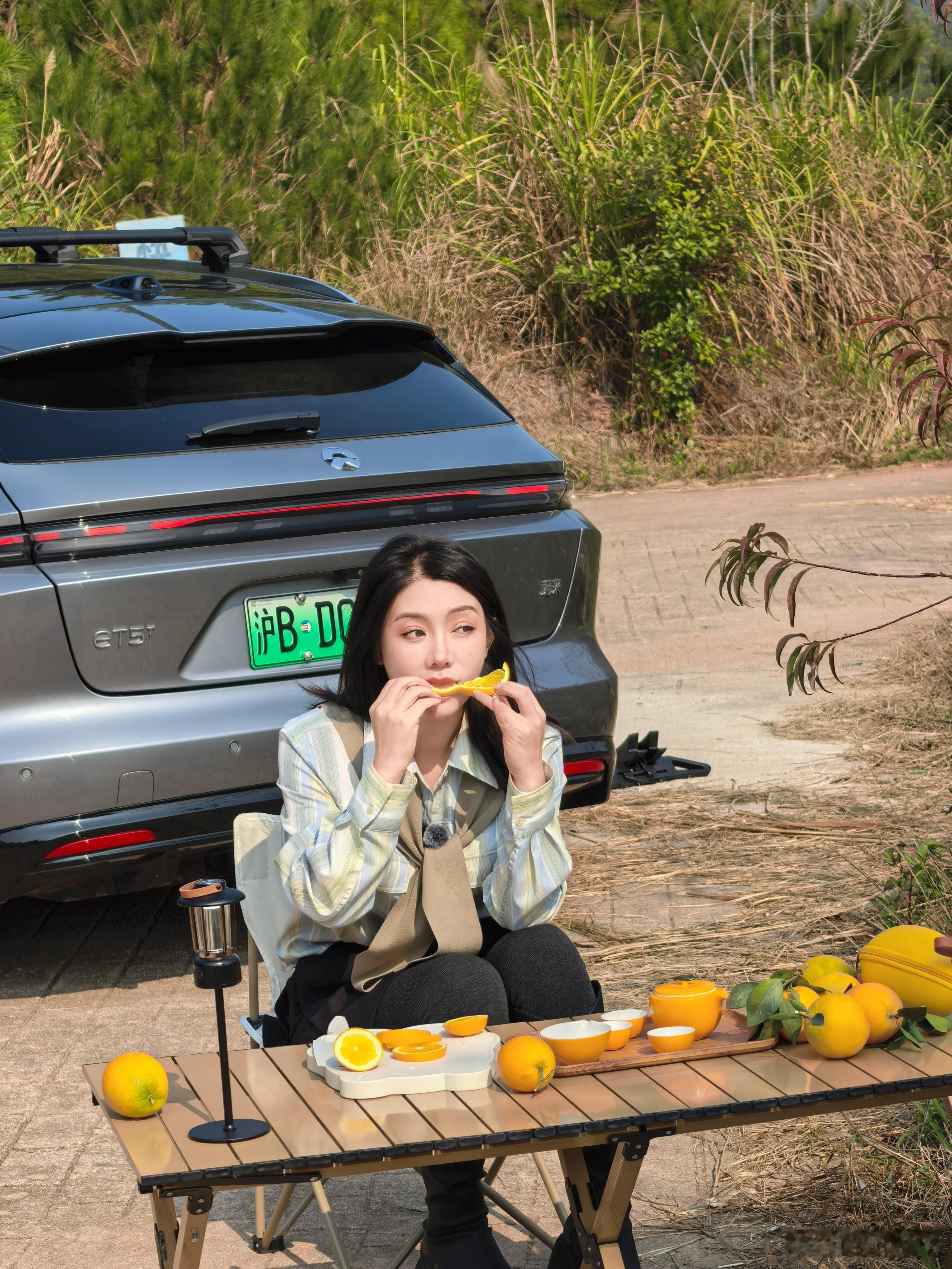日东水库这地方找得费劲,但往这儿一坐很治愈,切了昨天摘的橙子配热茶,风里都是山水味儿,舒服到想躺平 这蔚来ET5T往景里一停还挺搭,旅行车装自行车是真方便,等会儿卸下来沿景骑一圈,这趟来的太值我和汽车的日常