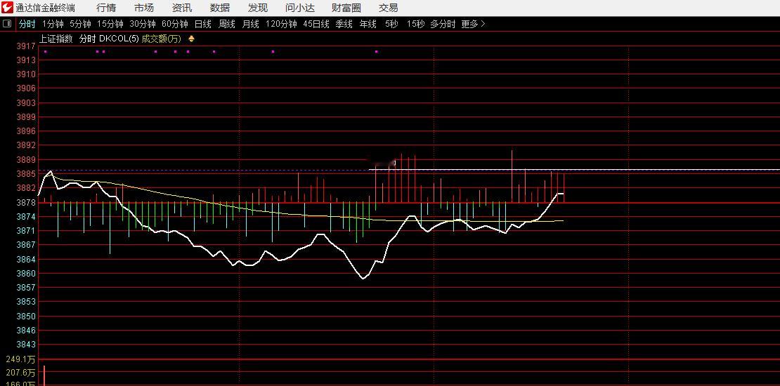 上证今天的上线是3886,但是注意软件指数要同步过其上线2879,这个时候才是勉强符合的,即便如此,也不稳定,因为上证指数与证券指数的日象不同步