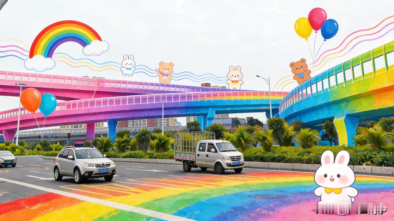 AI 真的很行,路过塘坑看到明珠湾大桥匝道这个高架,感觉搞点涂绘的话应该很好看,所以把任务交给豆包,大家看看喜欢哪个?