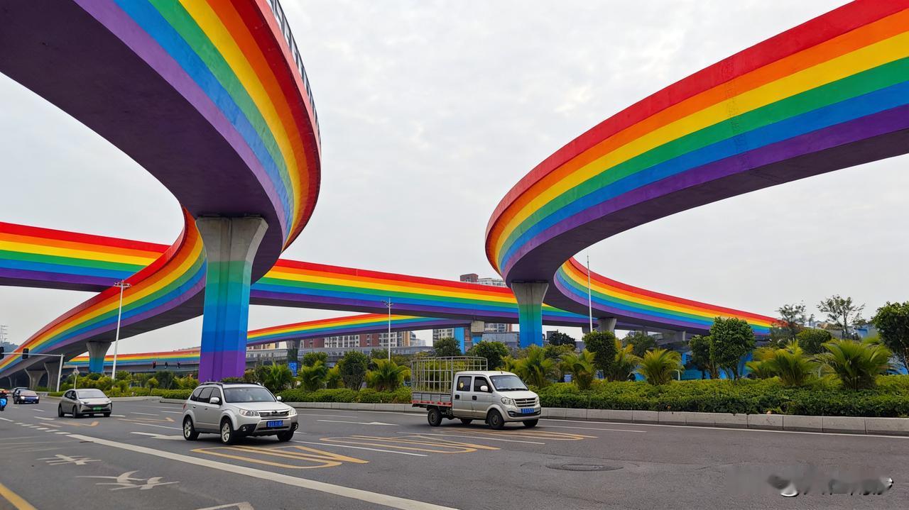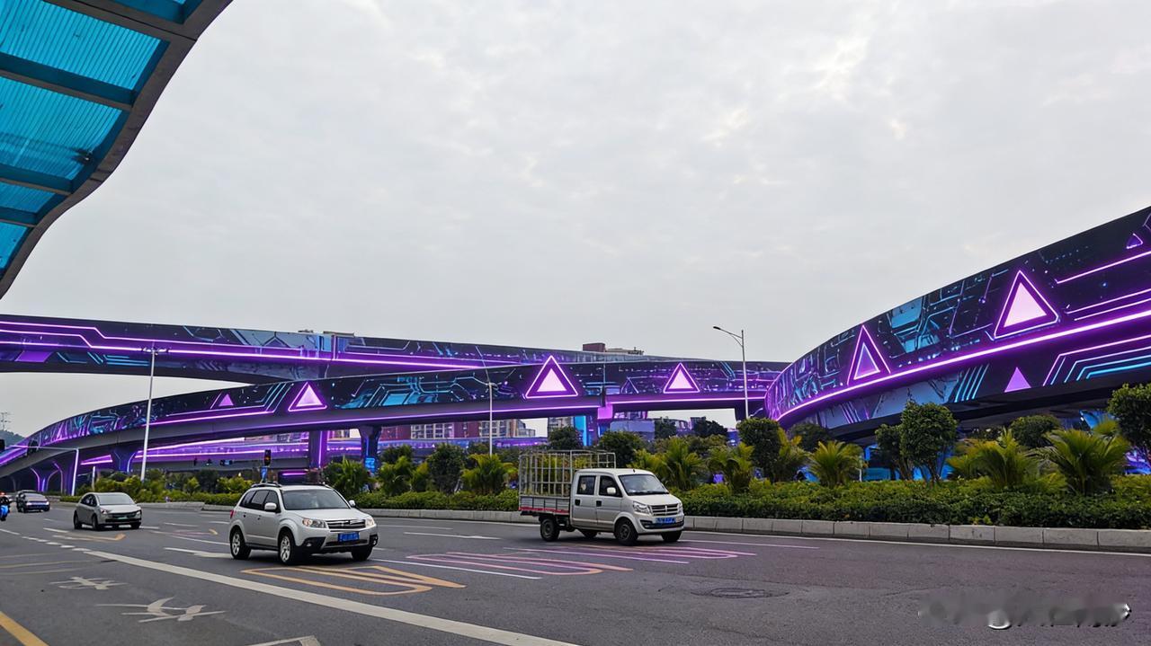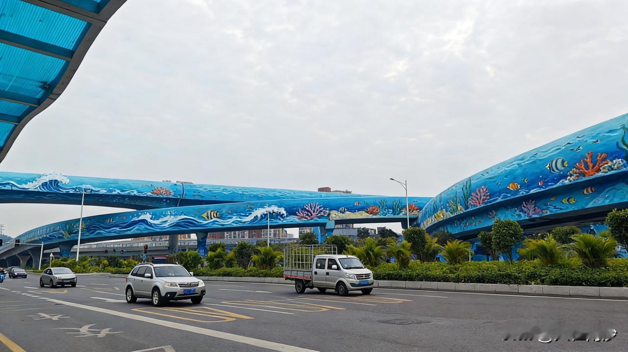 AI真的很行,路过塘坑看到明珠湾大桥匝道这个高架,感觉搞点涂绘的话应该很好看,
