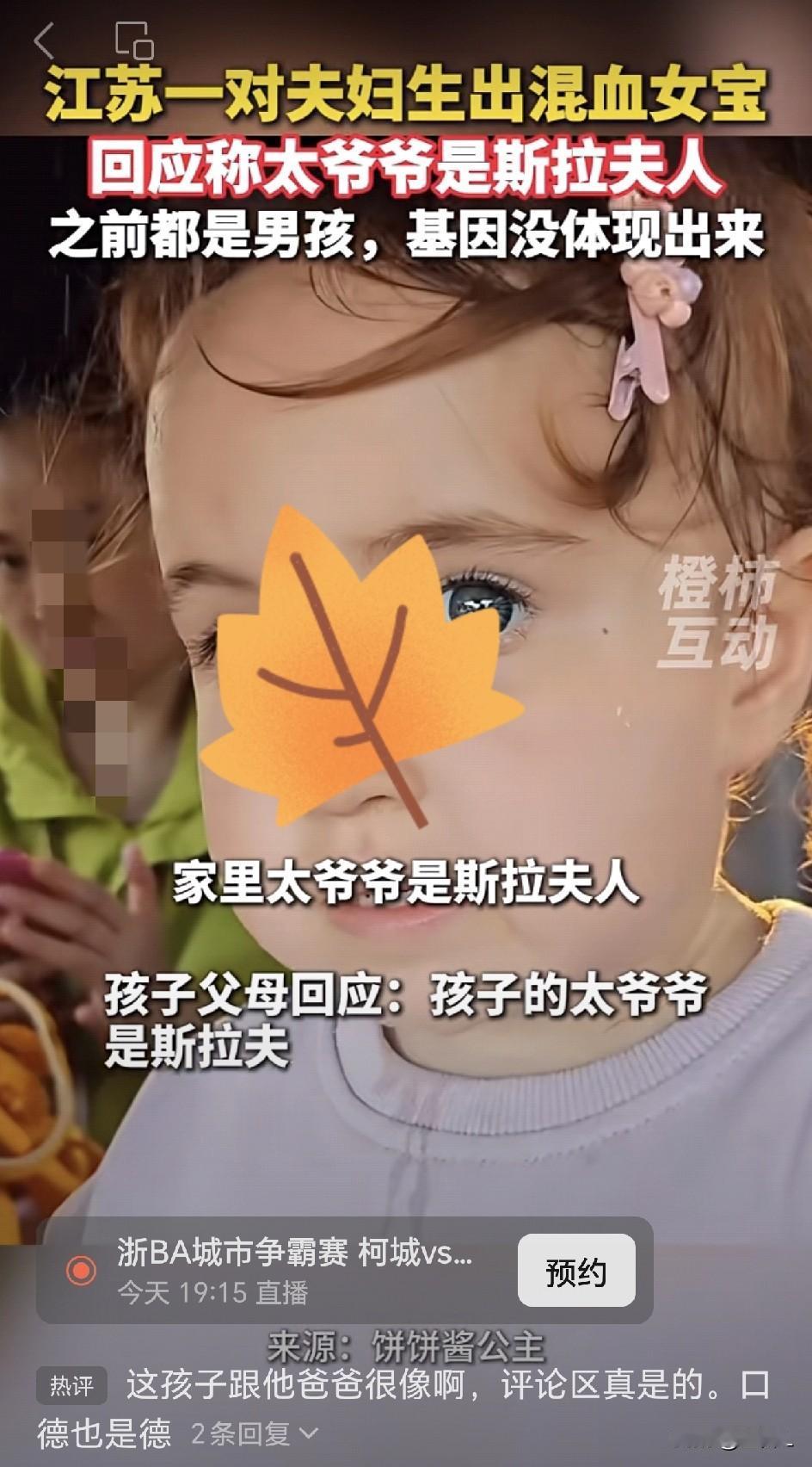 中国父母生出金发碧眼女婴引热议!基因“盲盒”开出隐藏款,家族秘密揭开! 近日,江苏盐城,一对中国夫妻生下了一位金发碧眼的女孩,引起了网友的热议。 据悉,女婴的父母及三代以内的亲属均为典型的中国外貌,而女婴出生有着金发碧眼、高鼻梁等明显的欧洲特征,与父母及家族成员外貌差异非常大。 家人最初也怀疑过是不是医院失误,是不是抱错了孩子? 但亲子鉴定结果上,清清楚楚、明明白白地写着女婴就是父母亲生的孩子(匹配度99.99%)。 当他们开始追溯家族史,才发现,这背后竟藏着一个跨越四代的家族秘密,女婴的太爷爷原来是一位俄罗斯人(斯拉夫人)。 而太爷爷身上所携带的斯拉夫基因属于隐性基因,此后家族里三代成员都是男孩,都没有显现这个基因。 直到第四代,这位小小的女婴的出生。经由父母双方隐性基因结合触发,才在女婴身上表达了出来。 据遗传学显示,此现象概率为1/16,需多代连续传递隐性基因,还需要父母同时携带隐性基因才有可能激活。 网友戏称其为“基因盲盒的隐藏款”。 事件曝光后,部分网友发出不和谐声音: “这哥们别把自己骗了!” “这个事妈妈最心知肚明!” “太爷爷承担了所有!” 甚至有人在面对网友说亲子鉴定已确认了亲生关系时,居然反问:“亲子鉴定能有网友权威?” 这都是些什么人呢?做人还是要口下留德,不要给自己造这么多孽障! 面对网络质疑不断,父母通过亲子鉴定和公开家族史化回应外界质疑,强调了孩子身份的认同(中国籍,汉族)。 更多的人对夫妻的回应纷纷表示支持: “这孩子跟他爸爸很像啊,评论区真是的,口德也是德!” “我家女儿不像我也不像他爸爸,长得和她奶奶一个模样,我老公自己都不那么像他妈。” “积点口德,我太奶奶的基因我还有,我爸就没有,我堂弟的女儿也遗传到了,刚好五代!” “这个不会抱错的,和爸爸妈妈都很像,特别是爸爸!” “和爸爸一模一样啊,头发眼睛不一样颜色而已!” “我家族也出了一个,金发蓝眼睛白皮肤的!” 隐性基因的“奇迹”,你是否也遇到过? 遗传学中,隐性基因可能潜伏多代,在特定组合下才会显现。生活中,你是否也曾遇到类似“不像父母却像祖辈”的情况?评论区聊聊你家的“基因故事”! 血脉亲情不止于外貌,理解与尊重才是温暖人心的光。对此,你怎么看? 信息来源于都市快报,侵联删!