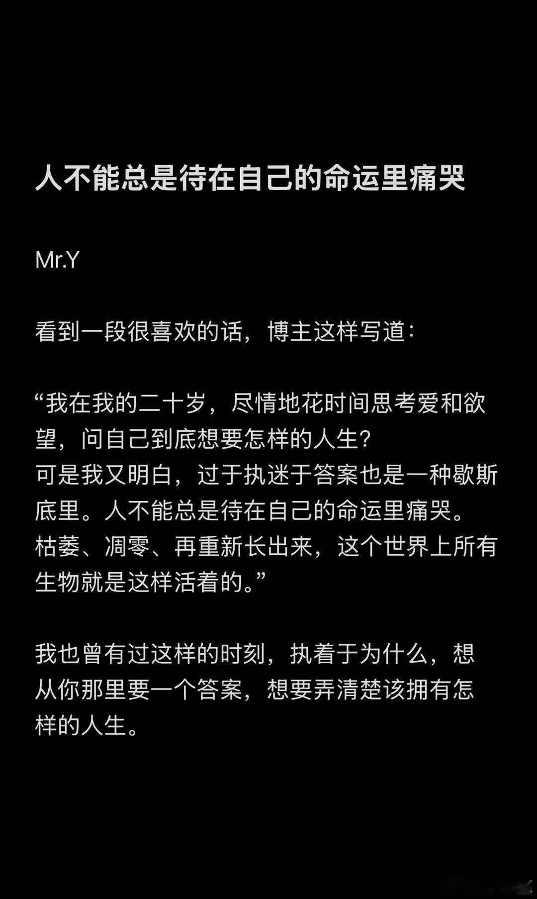 人不能总是待在自己的命运里痛哭