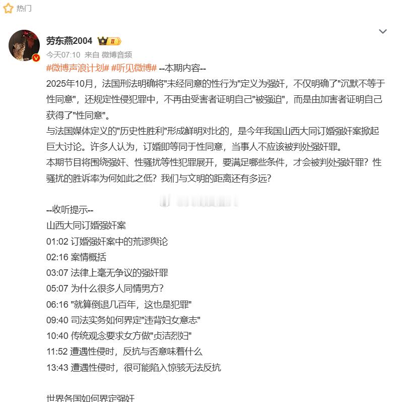 法学教授劳东燕谈性同意边界 订婚不等于性同意,这个观点估计争议者不多,劳教授还是优先解释一下,“同意可以撤销”这种观点正确吗性过程必须全程录音录像备查吗,之前要签完全同意书、之后要签绝不反悔认定书吗?热点观点 ,同意可以撤销