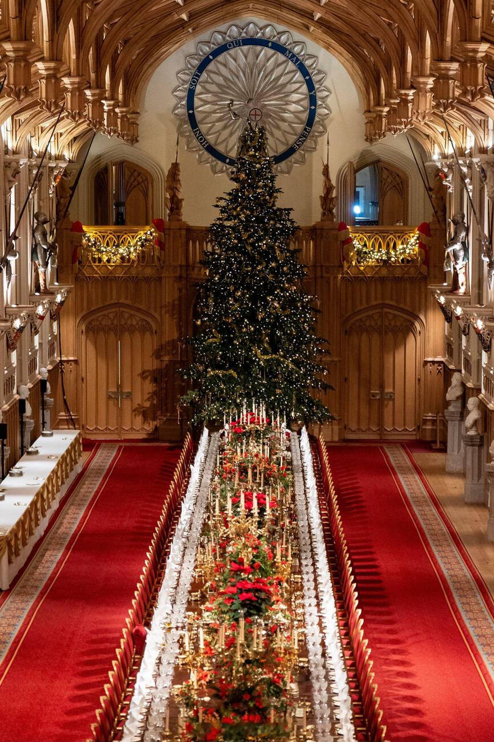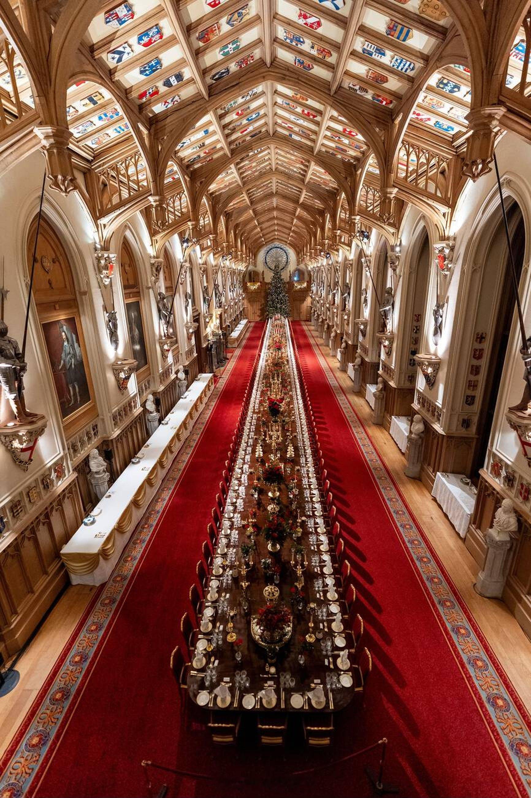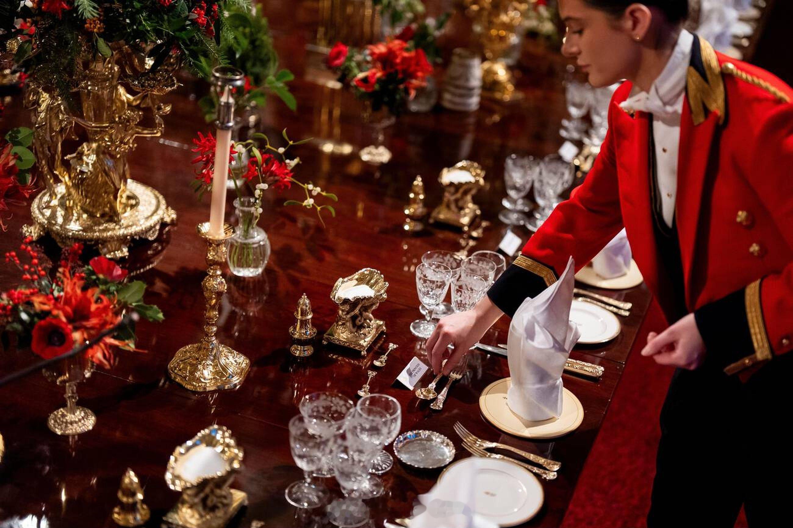 2025年12月3日,查尔斯三世和卡米拉王后在温莎城堡圣乔治大厅主持德国国宴,威