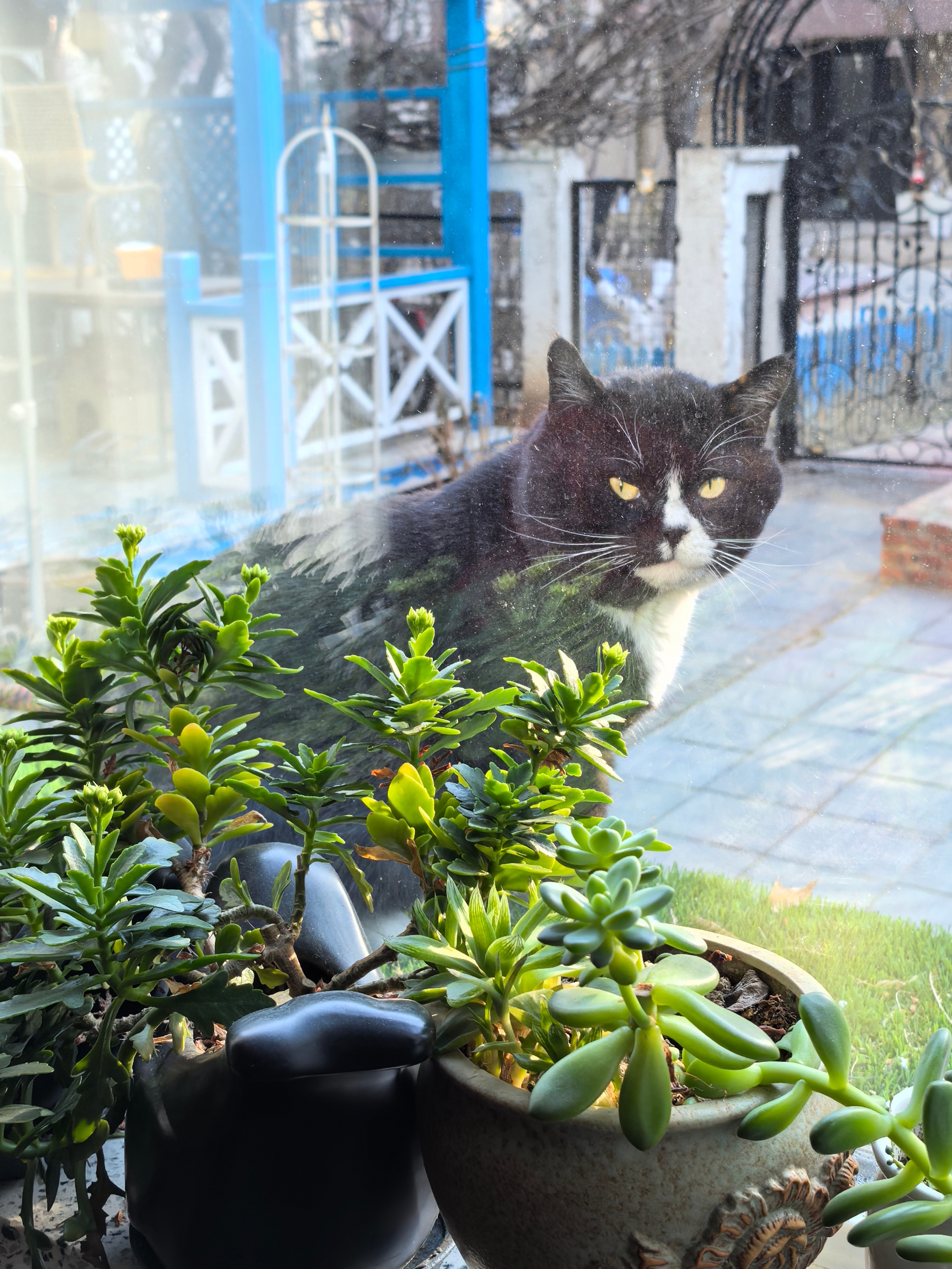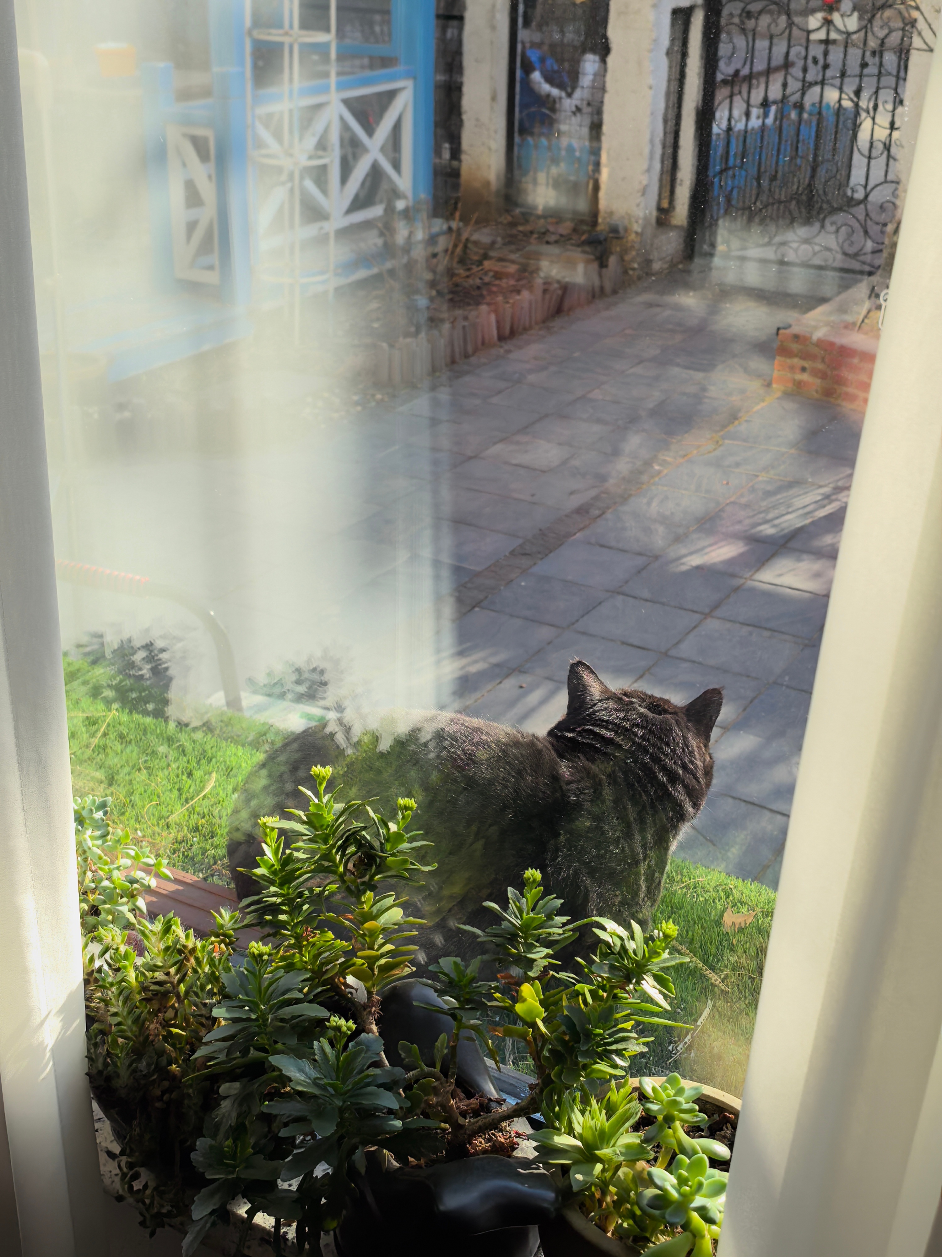 我家是流浪猫乐园…这只大胖黑猫每天下午都来晒太阳…