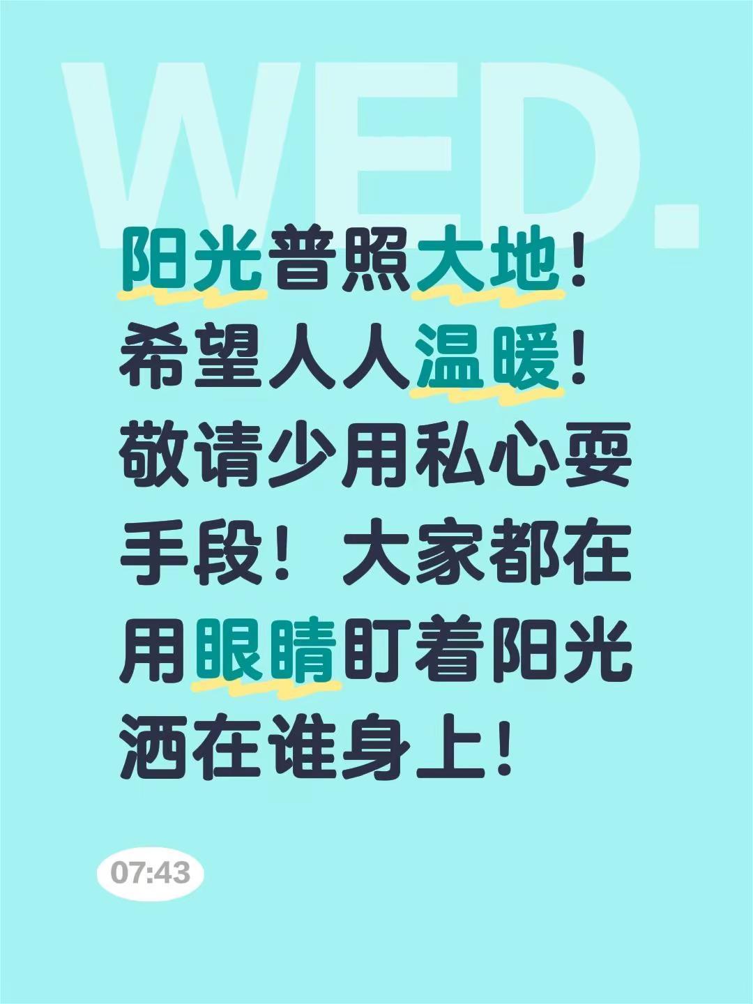 阳光普照大地!希望人人温暖!敬请少用私心耍手段!大家都在用眼睛盯着阳光洒在谁身上