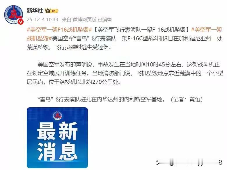 1秒失控!雷鸟F-16炸穿沙漠 26条人命没敲响警钟? 1秒失控!飞行员刚弹射出舱,F-16就轰的一声炸成火球,中国湖的黄沙又埋了一架美军战机。 2025年12月,美国加州莫哈韦沙漠深处,号称“全球最牛表演队”的美军“雷鸟”,正在中国湖航空武器站备战2026年巡演。谁能想到,一架F-16突然失控俯冲,飞行员在离地仅百米的生死瞬间弹射逃生,战机砸向盐碱地的瞬间炸开,橘红色火球窜起三四米高,浓密黑烟在沙漠上空飘了整整一下午。好在没波及地面人员,但这场惊魂事故,让无数人盯着一个扎心问题:这里都摔了126架飞机、26名试飞员遇难了,为啥还敢让顶尖表演队在这训练? 现场目击者拍的视频里(已获授权传播),残骸炸得满地都是,锋利的金属碎片嵌在黄沙里,燃油燃烧的刺鼻气味几公里外都能闻到。消防员穿着厚重防护服在高温下忙活两小时,拉起的黄色警戒带外,基地人员脸色凝重——没人想得到,这支累计表演3000场、访遍50多个国家、1987年还来中国献艺的“空中明星队”,会栽在这个“美军事故高发地”。目前海军正连夜回收残骸,空军成立的调查委员会盯着三大疑点:弹射系统为啥突然触发?战机是不是早就有隐患?飞行员操作没问题吗?初步报告得等好几个月,但网友的怒火已经压不住了。 “雷鸟”的光鲜背后,藏着多少硬凑的“完美”?他们的F-16要1000小时首修、之后每700多小时就全面检修,2万多根导线、1000多根导管都要人工查,可中国湖是出了名的“沙漠陷阱”——年降水量不足20毫米,高温把机身铝合金烤得容易沙蚀,液压密封件晒得加速老化,更要命的是,这里的事故率是美军平均水平的2.3倍,2025年才刚过半,美军已经在这摔了3架军机!军事专家张维直言:“特技飞行容错空间就几米,低空高难度动作时,航电触点氧化导致信号慢0.1秒,液压渗漏让机翼动不了1厘米,都能要命!美军明知这地方危险,还让‘雷鸟’来备战,说白了就是赌——赌不会出事,赌能靠光鲜表演撑住军事宣传的面子。” 一边是飞行员的生死一线,一边是美军的“宣传KPI”,这起事故把最残酷的矛盾摆到了台面上。“雷鸟”每年要飞300小时训练、跑几十场巡演,2026年的巡演计划早就公布,要是调查查出机型有普遍隐患,整个机队都得停飞,巡演要么延期要么黄。可从历史来看,美军每次摔机后,无非就是多加点自检时间、缩短点维护周期,从没真正解决“危险区域训练”的核心问题——毕竟,“空中特技”的宣传效果,可比“飞行员安全”直观多了。 现在网友吵翻了天:有人说“美军就是拿飞行员命换面子,该骂”,有人说“特技飞行本就有风险,没必要上纲上线”,还有人翻出迪拜航展印度“光辉”战机坠毁的事,质疑“所有惊险表演都是在赌命”。光鲜的表演值得追捧,但用生命当赌注的“精彩”,真的该存在吗?美军该立刻停飞“雷鸟”彻查隐患,还是继续推进巡演?觉得该停飞的扣1,觉得风险正常的扣2!转发让更多人看到,一起聊聊:军事宣传,该不该给生命让路? 雷鸟表演队坠毁惊魂 美军F-16生死弹射 中国湖事故高发地 军事宣传vs飞行员安全 特技飞行赌命值吗 信源:腾讯新闻《F-16战斗机在中国湖附近坠毁!隶属于“雷鸟飞行表演队”》、抖音百科《特技飞行表演队》《中国湖(美国海军武器试验基地)》、中国军网《战机大修学问多》、上游新闻《迪拜航展“光辉”表演中坠毁,为何印度空军总是事故频发?》
