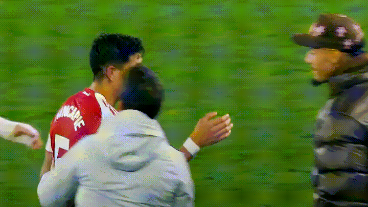 赛后加布里埃尔、萨利巴和因卡皮耶庆祝赢球阿森纳2比0布伦特福德 英超联赛 阿森纳