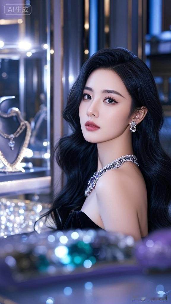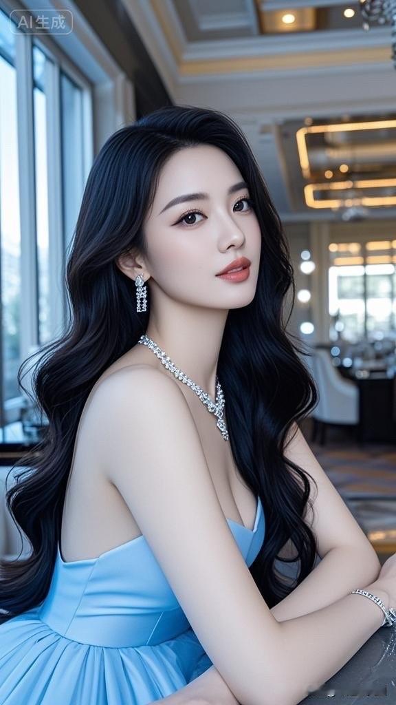 优雅蓝裙,闪耀珠宝,气质女神,美不胜收