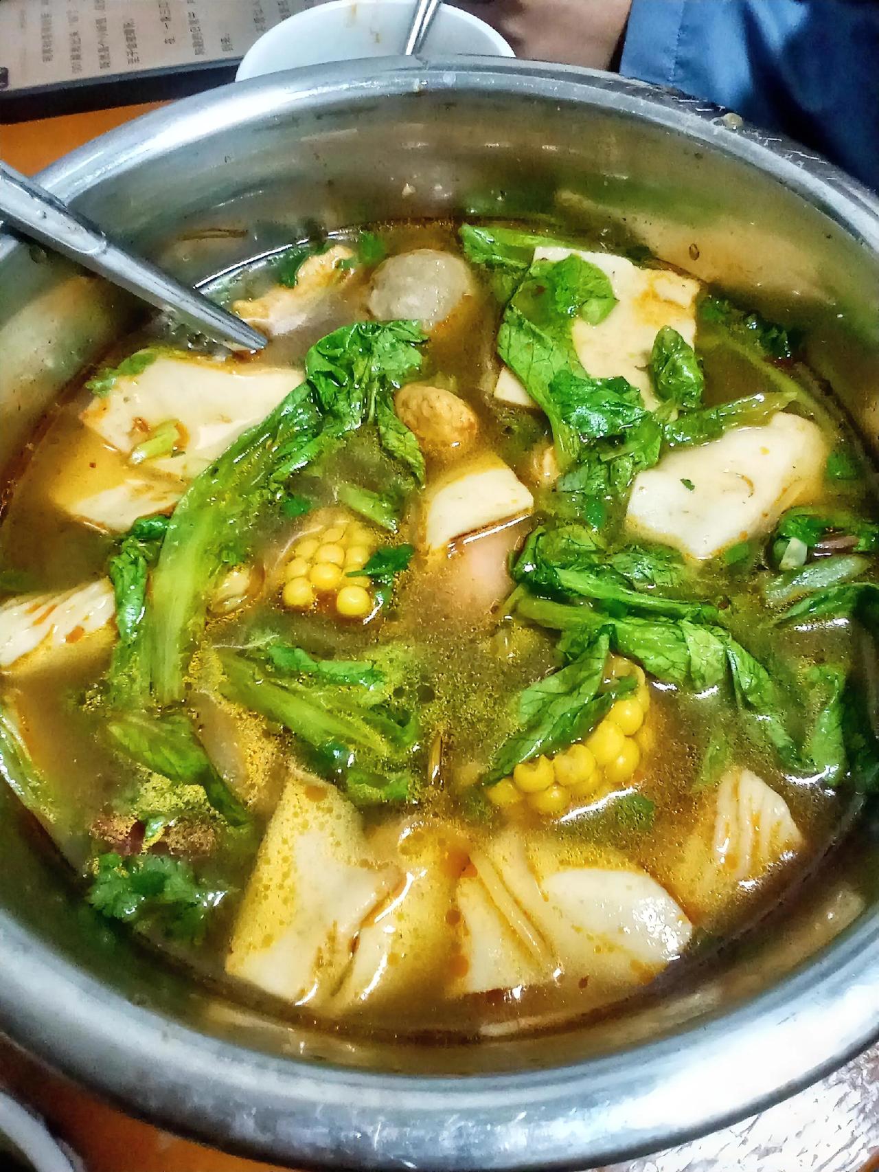 今晚这锅暖乎乎的汤食,是打工人的治愈时刻。锅里嫩白的豆腐浸在带点辣意的汤里,脆生生的生菜裹着鲜味儿,甜玉米粒藏在缝隙里冒头,还有圆滚滚的丸子软弹入味。 不锈钢锅端上桌时还冒着热气,筷子一夹,豆腐裹满汤汁,咬开是软嫩的香;生菜吸足了味儿,脆爽解腻。 裹着暖意的食材滚进胃里,一天的疲惫都跟着散了——平凡日子里的好滋味,就是这样热乎又踏实。