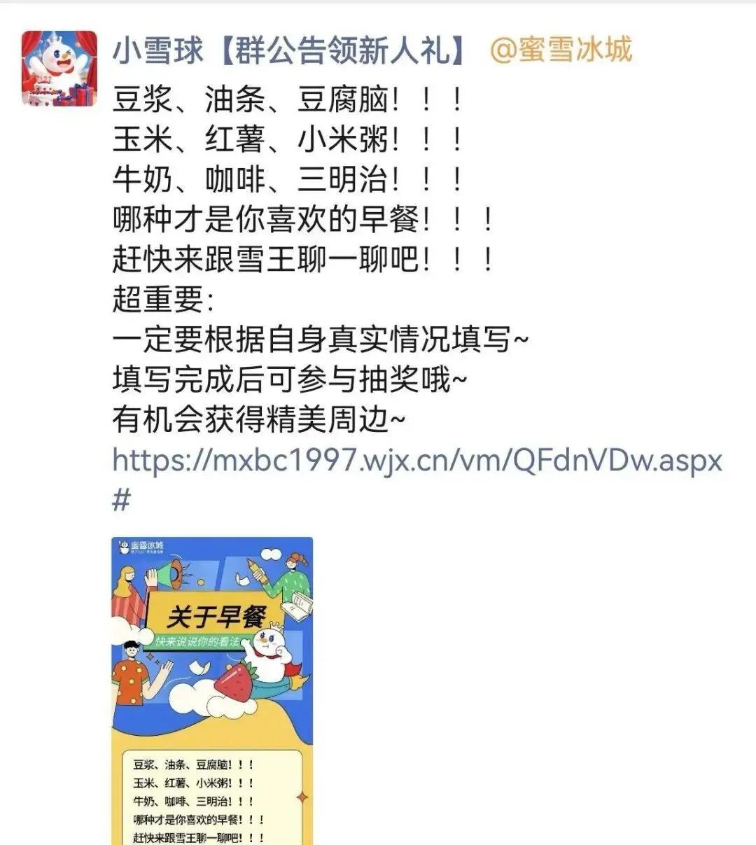 炸了!蜜雪冰城要卖早餐?问卷实锤有油条豆腐脑 雪王这是要承包咱们的早八啊!蜜雪冰城早餐暴击 雪王要卖早餐了 蜜雪冰城问卷直接炸屏了!问卷里明明白白列着:豆浆、油条、豆腐脑就算了,居然还有玉米红薯小米粥,甚至牛奶咖啡三明治!这阵容谁看了不迷糊啊! 26号下午刷朋友圈,突然看到雪王发的早餐调研,立马就分享出来了! 点进问卷一看,细节拉满了!性别、年龄、职业、省份全问到了,连早餐花多少钱都摸清了,最后还直击灵魂:要是雪王卖早餐,你想要啥样的? 为了搞到实锤,记者光速冲了蜜雪冰城的联系方式:企业微信没回,招商热线的人说“没听说这事儿”,客服倒是记了问题,说会反馈给相关部门。 咱就问!蜜雪冰城要是真卖早餐,3块豆浆配2块油条能安排不?这价格要是能拿下,早八人直接狂喜啊!蹲死官方回复!