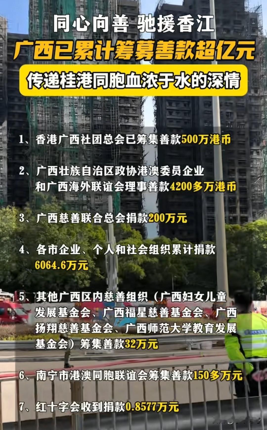 看到消息,广西这次对香港筹募善款一个多亿,不得不为广西点赞! 一直备受他人热议的广西总是在他人需要帮助时伸出援助之手,遥想当初遇到过任何灾害,更多的只能自我帮助,可依然少不了外人的热议,有人说广西穷,可广西却总是一次次倾囊相助!有人说广西落后,自己的困难自己去克服,可广西总在别人遇到困难时尽力而为,难道这样的广西不值得被赞扬和尊重吗[灵光一闪]香港救灾 公益金香港 你对广西北部湾的感受是什么 人情世故真的有用吗